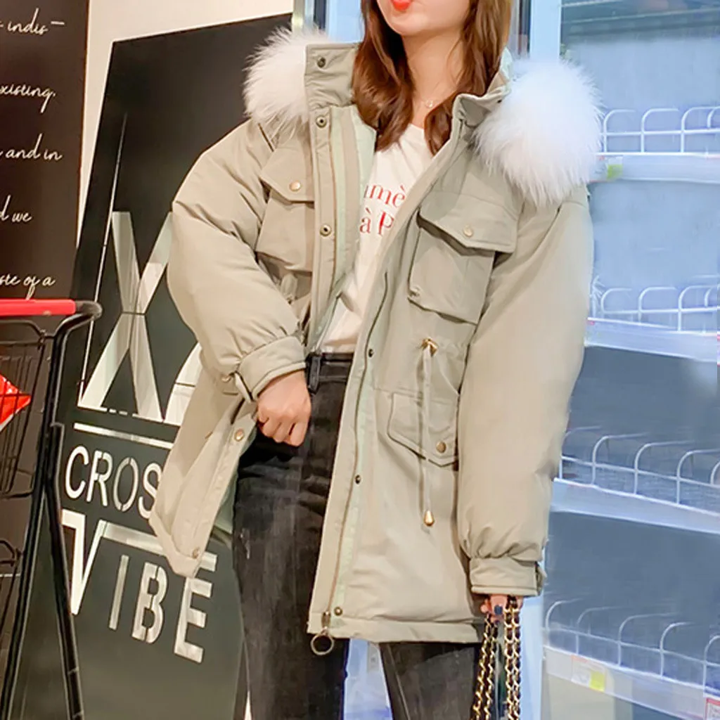 Модная женская зимняя теплая хлопковая зимняя куртка с капюшоном, однотонное пальто с длинными рукавами