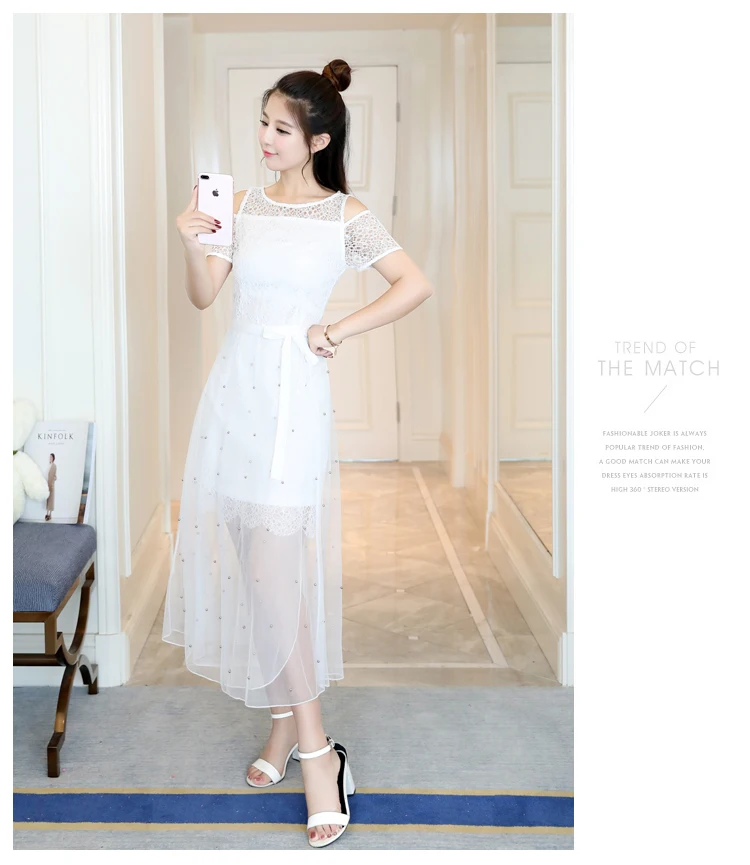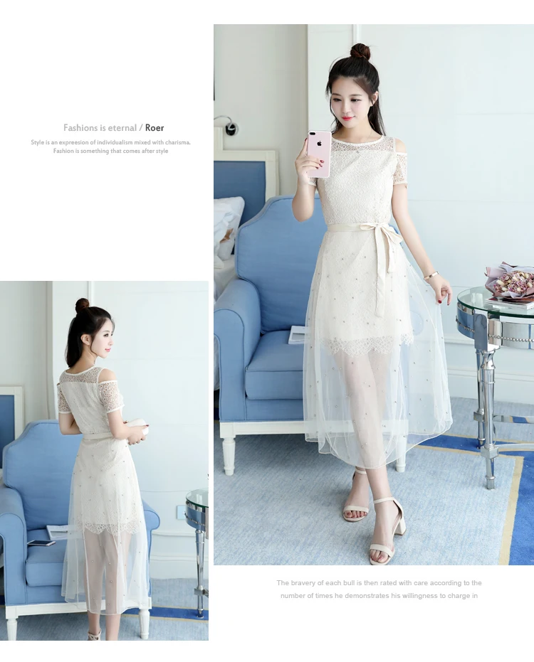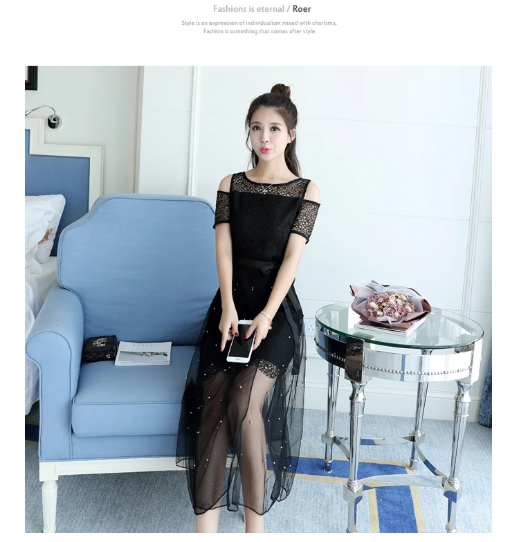 Женский костюм-двойка с коротким рукавом, многослойное плиссированное платье в горошек с кружевной сеткой, модель DV97 на лето, 2020