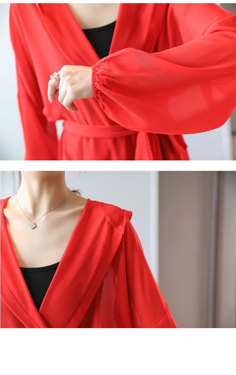 2020 летнее размера плюс шифоновое кимоно Женская блузка Hol1 из кружева тонкое пальто женские кружевные рубашки Длинные кимоно красный LJ596