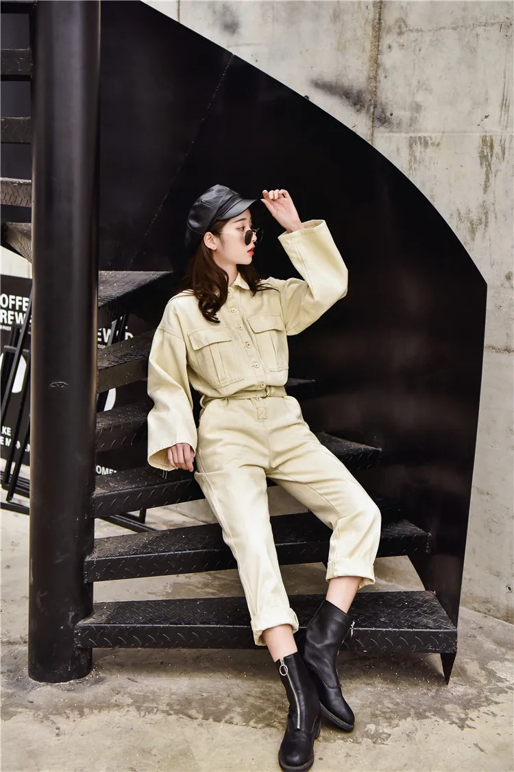 Женский синий джинсовый комбинезон в стиле ретро, брюки, комбинезоны, осень 2020, уличная одежда, облегающие Женские свободные джинсы с высокой талией, комбинезоны, AE171