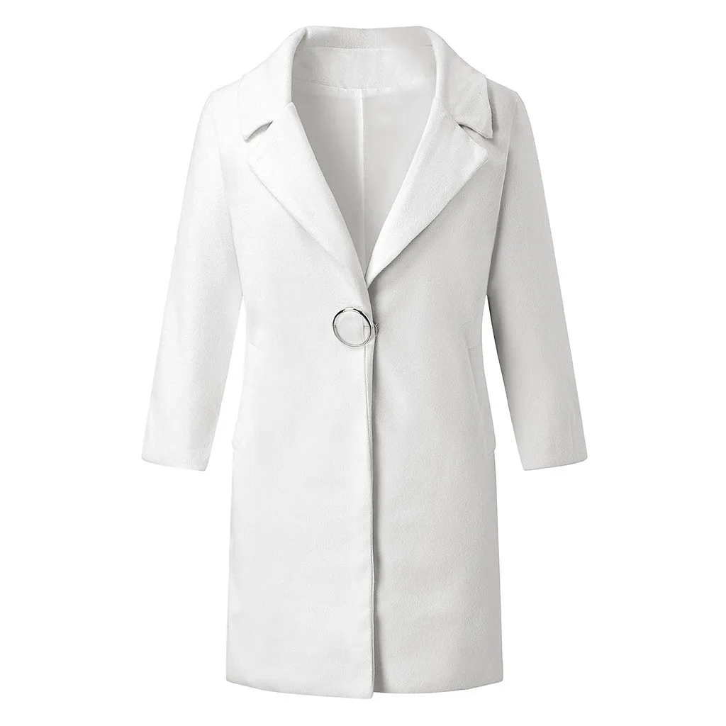 Женское модное однотонное повседневное шерстяное пальто средней длины с длинным рукавом