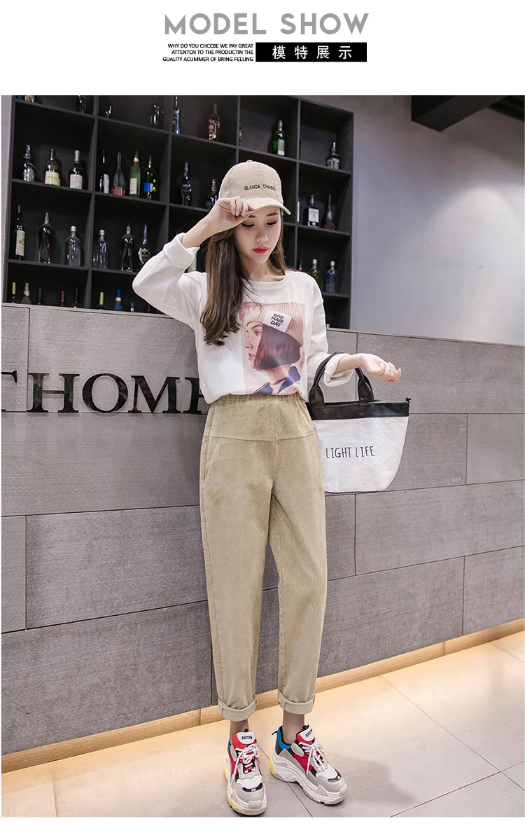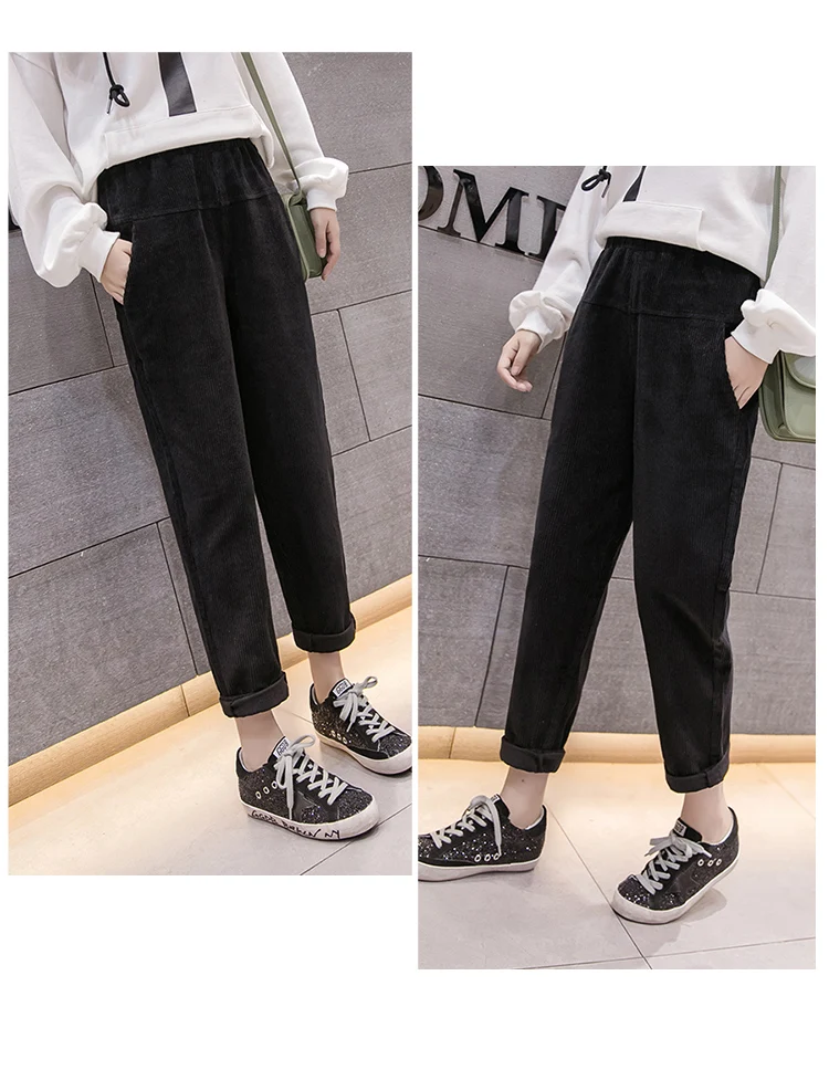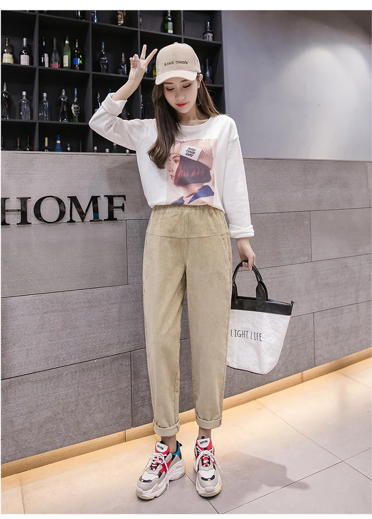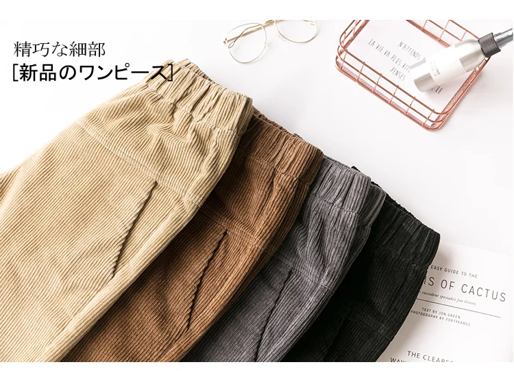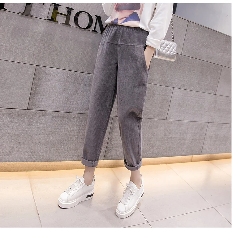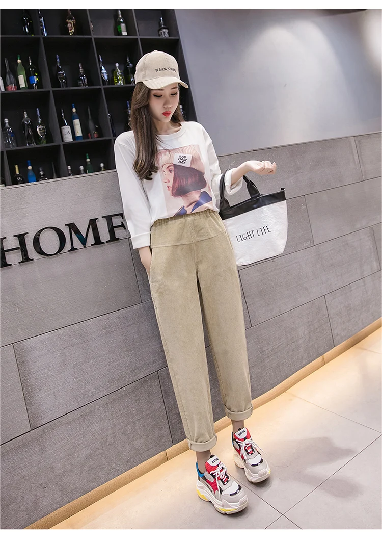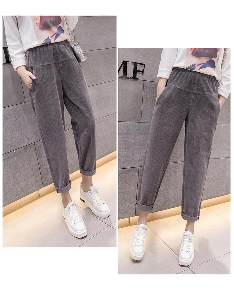 Весна-осень, вельветовые брюки с высокой талией, женские брюки с эластичным поясом, брюки цвета хаки, серый, черный, абрикосовый, штаны-шаровары S-XXXL DC715 <