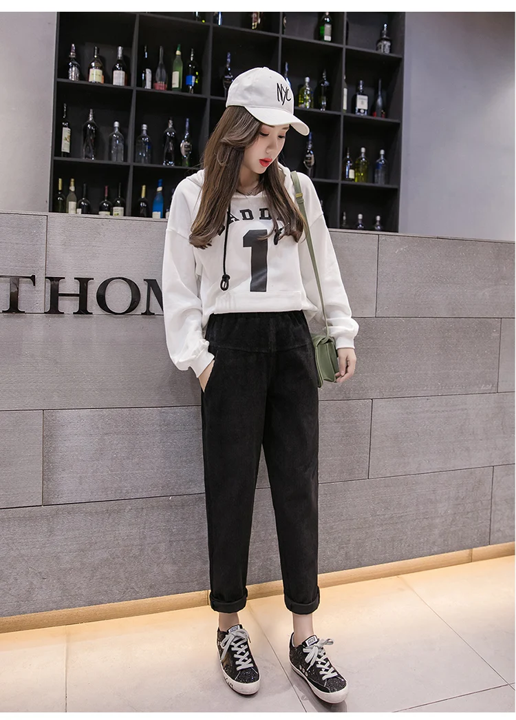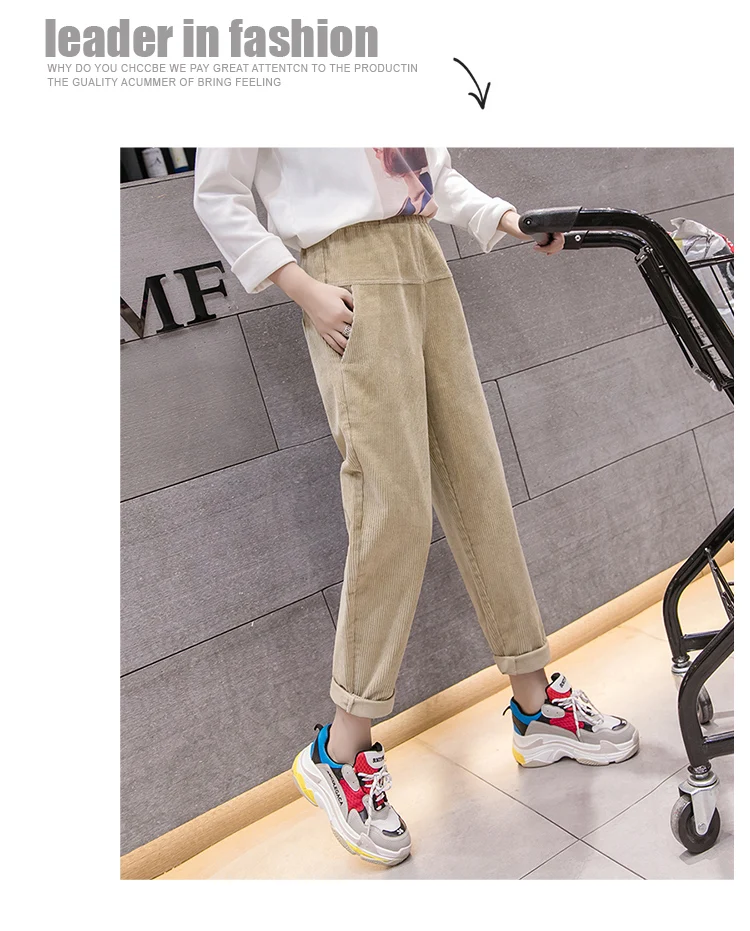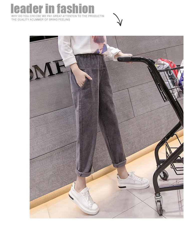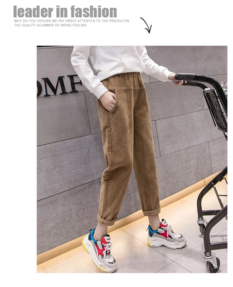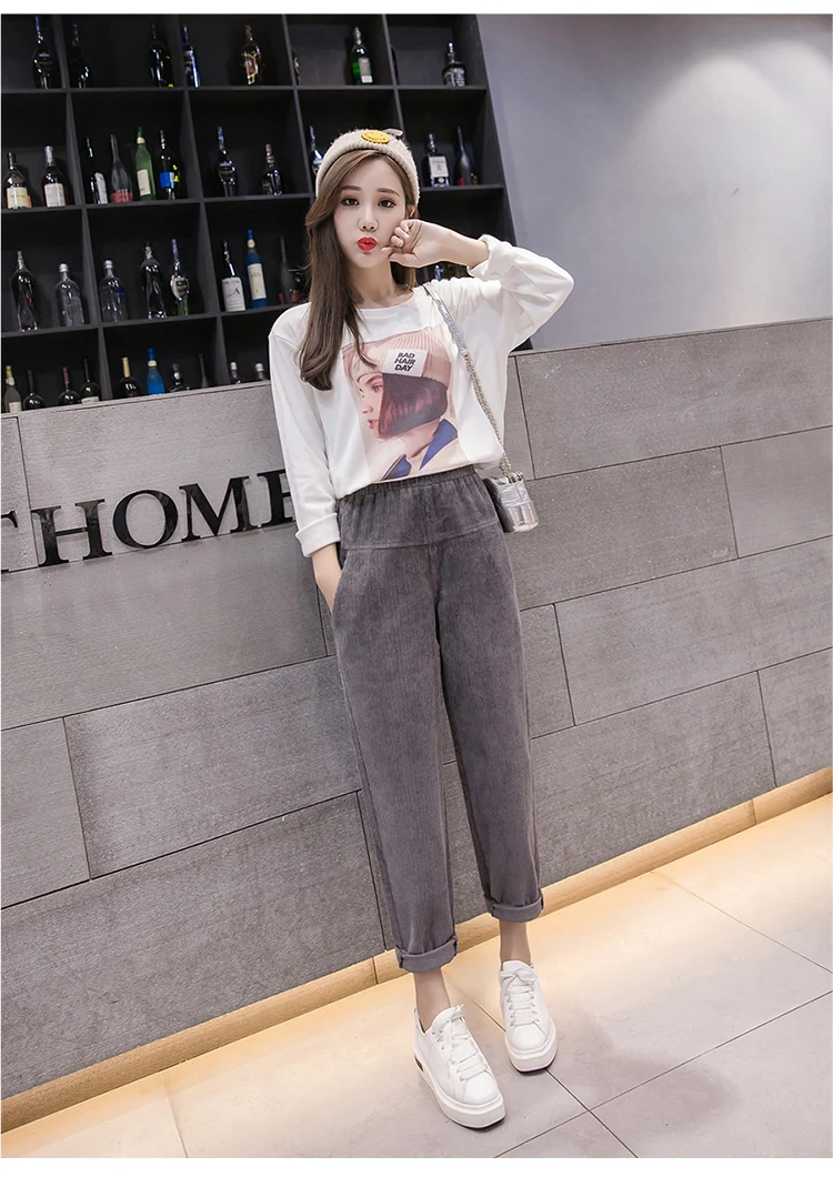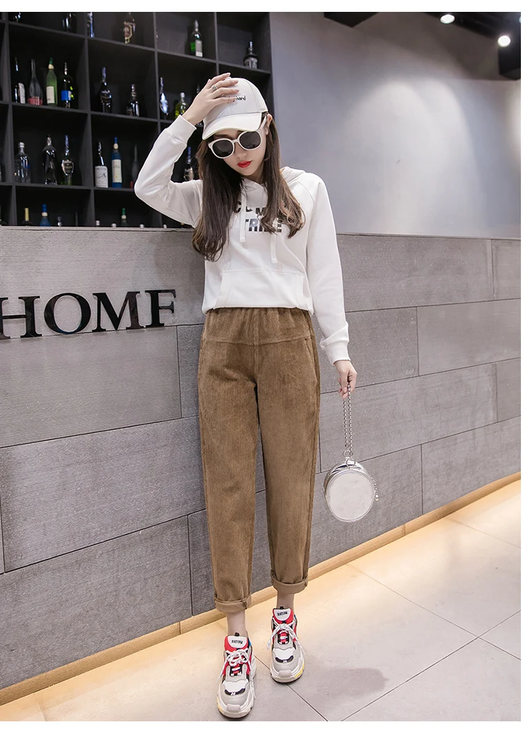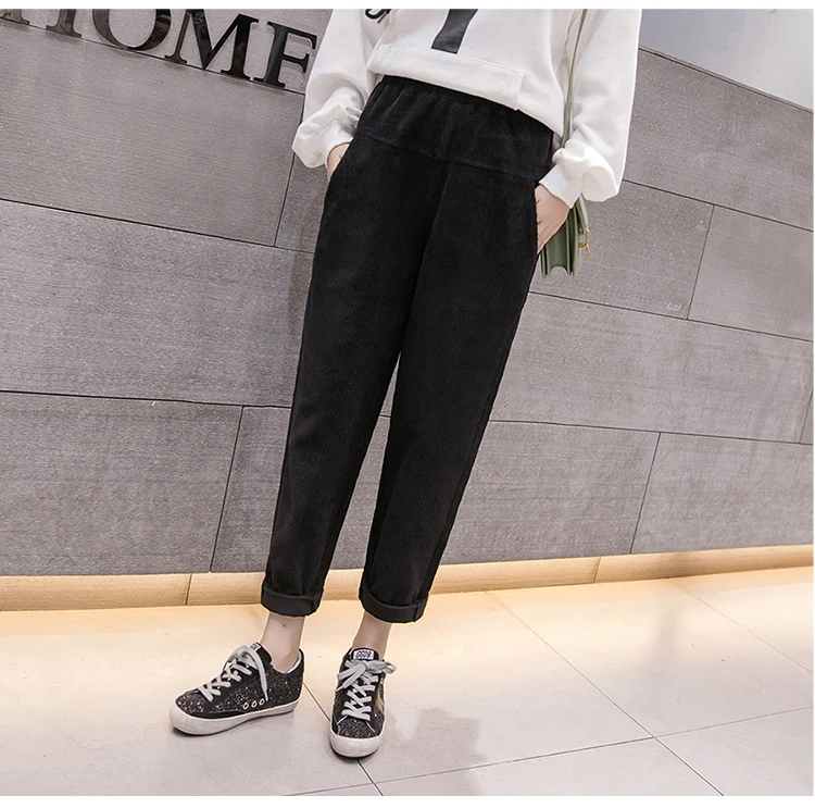 Весна-осень, вельветовые брюки с высокой талией, женские брюки с эластичным поясом, брюки цвета хаки, серый, черный, абрикосовый, штаны-шаровары S-XXXL DC715 <