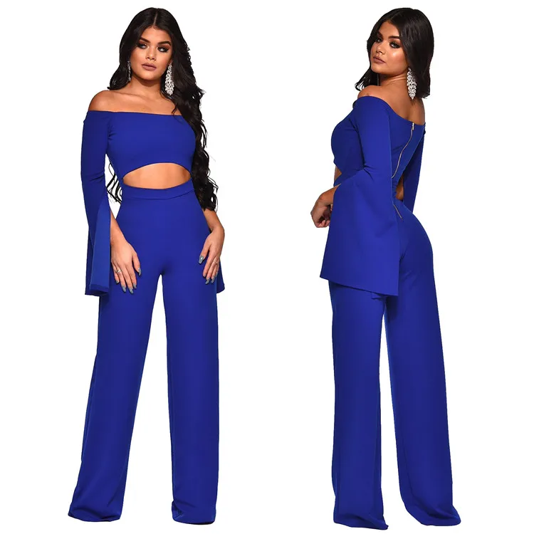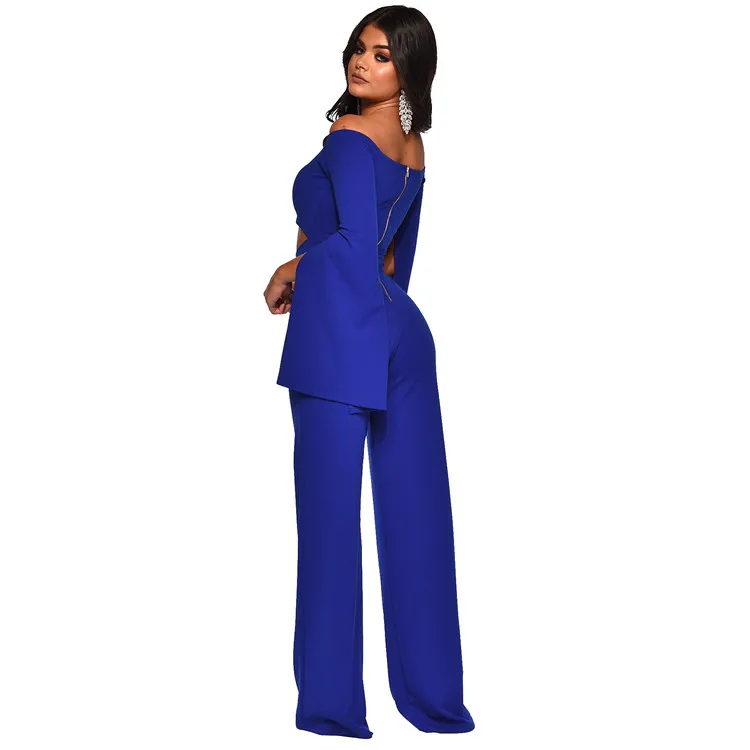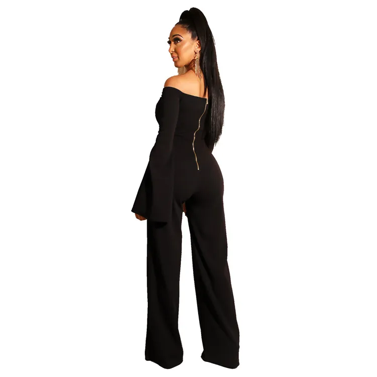 Сексуальный комбинезон с длинным рукавом, широкие брюки для женщин, с вырезом лодочкой, без бретелек, на молнии, сзади, элегантный комбинезон AE177