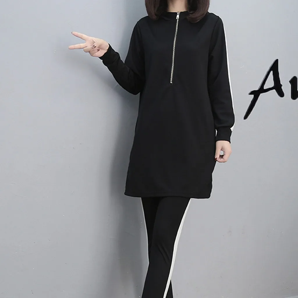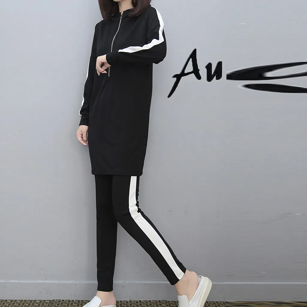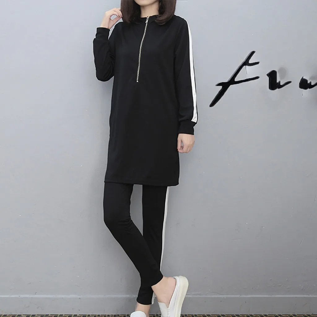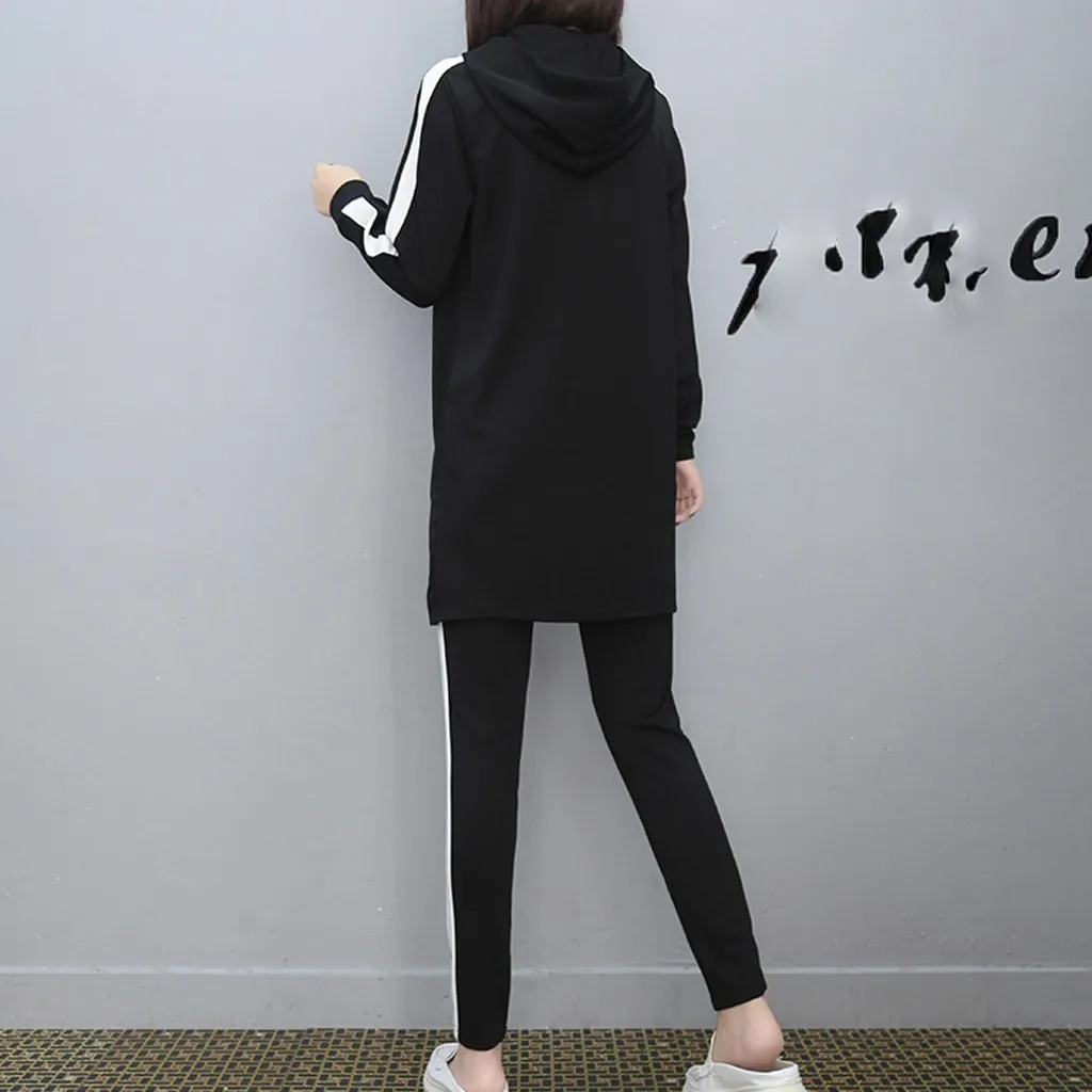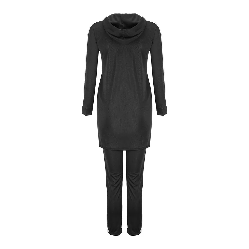 Женский комплект из 2 предметов с длинным рукавом и разрезом, длинные штаны с капюшоном, повседневная спортивная одежда