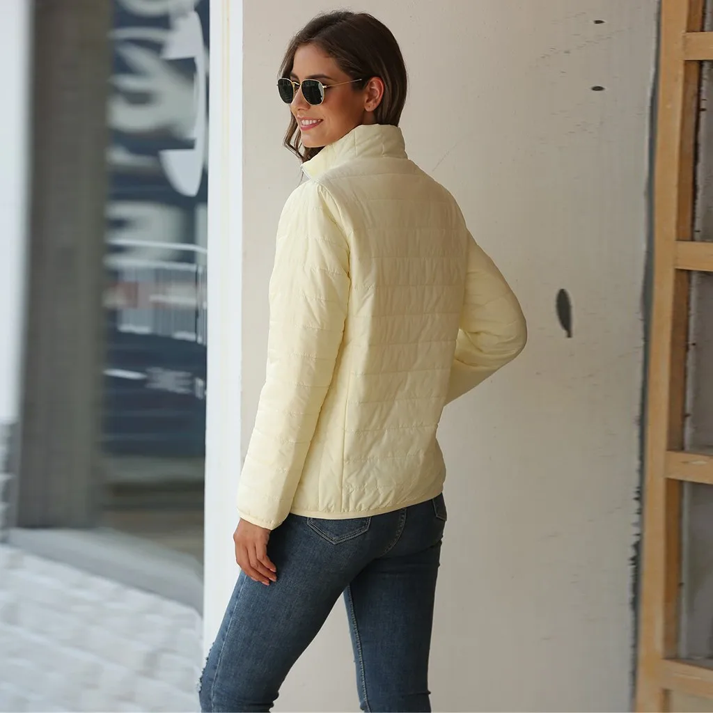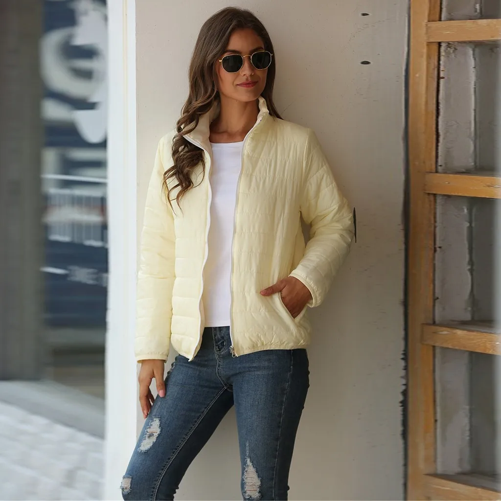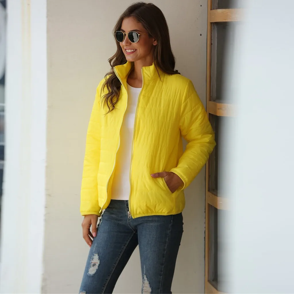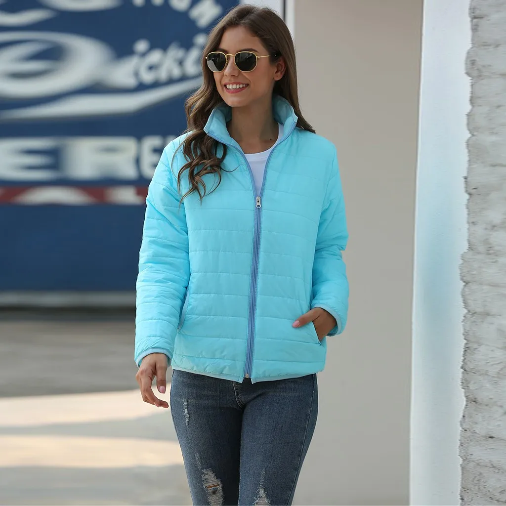 Женская зимняя теплая куртка с длинным рукавом и воротником-стойкой, однотонное пальто на молнии, doudoune femme hiver, новинка 2019
