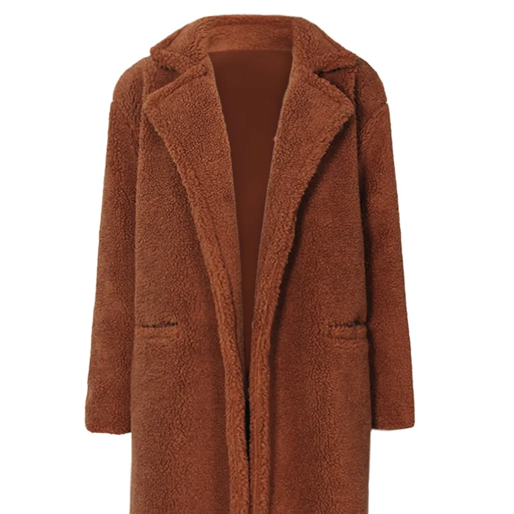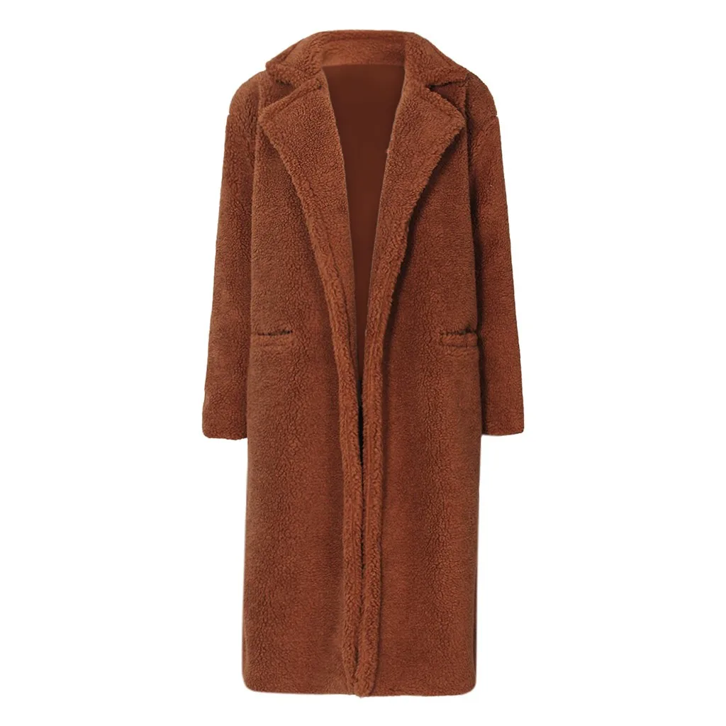 Женское пальто из искусственного меха, куртка с плюшевым мишкой, Женская плюшевая теплая однотонная куртка, верхняя одежда, пальто-кардиган с карманом