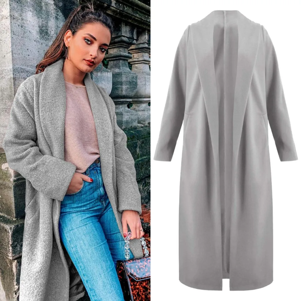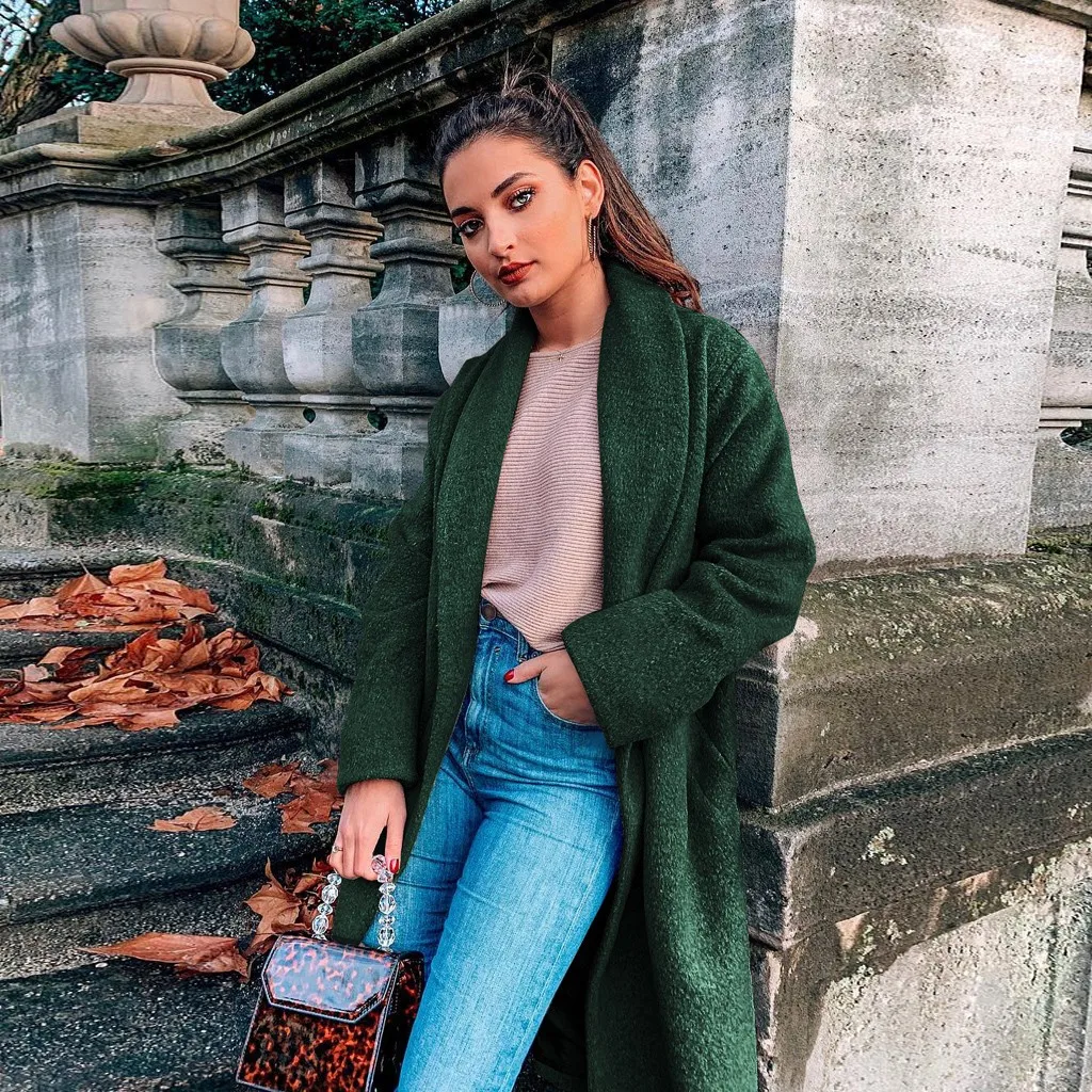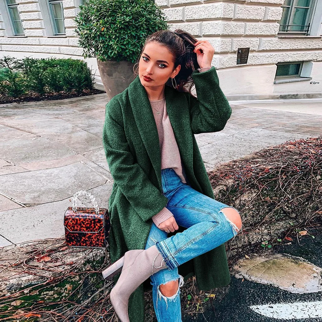 Женская мода с длинным рукавом куртки сплошной цвет свободного покроя пальто с поясом Топы