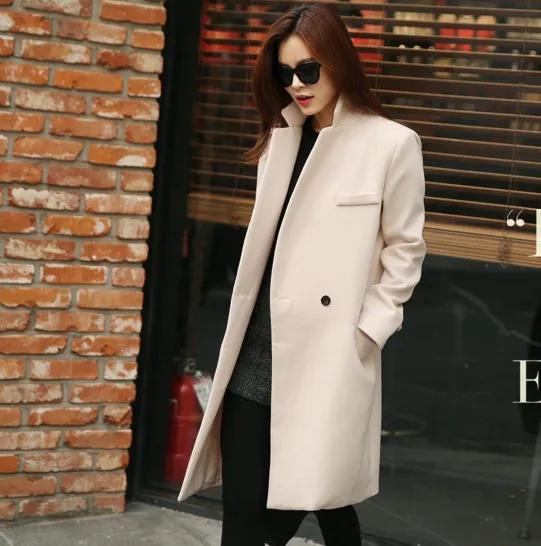 Manteau Hiver 2020 зимнее пальто женское элегантное теплое шерстяное пальто на одной пуговице Длинное Пальто бежевое розовое черное abrigos mujer DF610