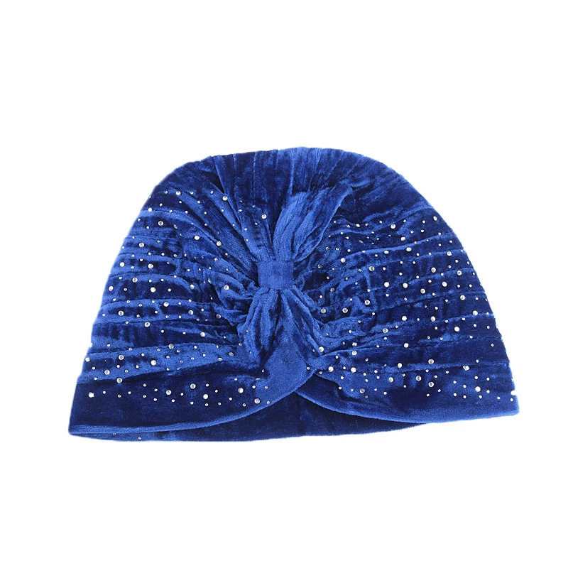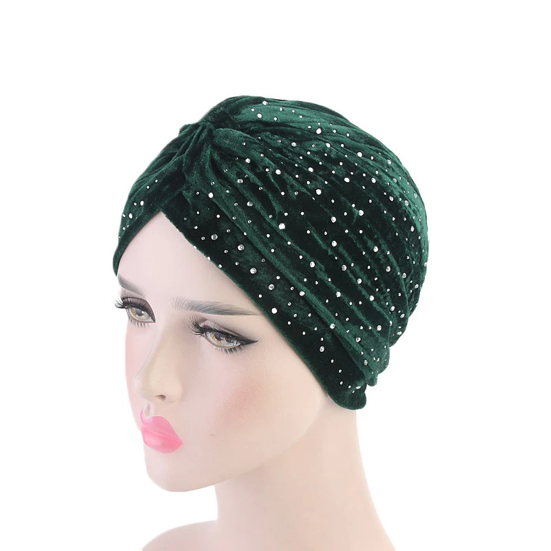 Стразы бархатная тюрбан эластичный твист сплошной Цвет хиджаб Кепка Chemo головные обручи