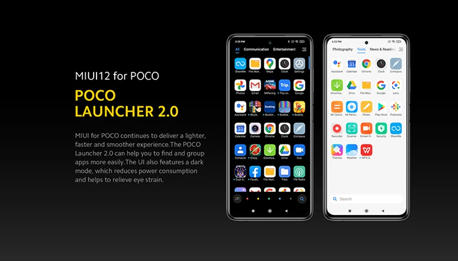 MIUI для POCO продолжает поставлять более легкий, быстрый и плавный опыт. POCO Launcher 2,0 поможет вам легко найти и скомпоновать приложения. Пользовательский интерфейс также оснащен темным режимом, который уменьшает энергопотребление и помогает снять напряжение на глаза.