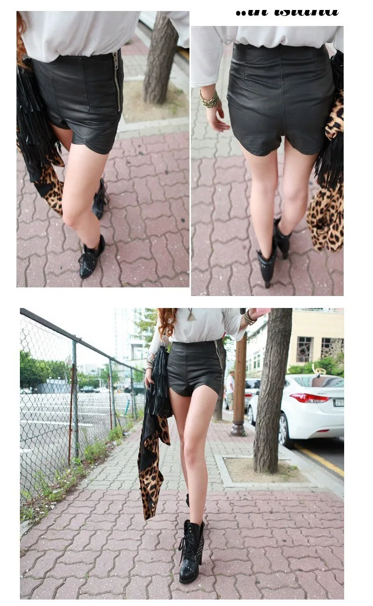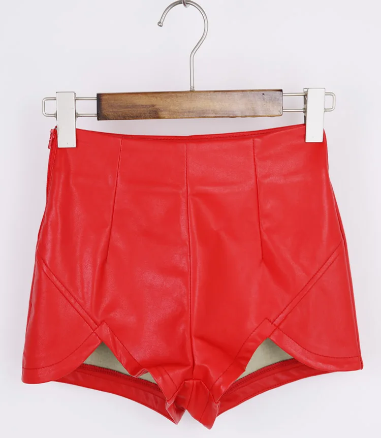 2020, шорты с высокой талией, винтажные, тонкие, с разрезом, высокое качество, кожаные, короткие, сексуальные, черные, красные, из ПУ кожи, женские шорты, летние, AH501