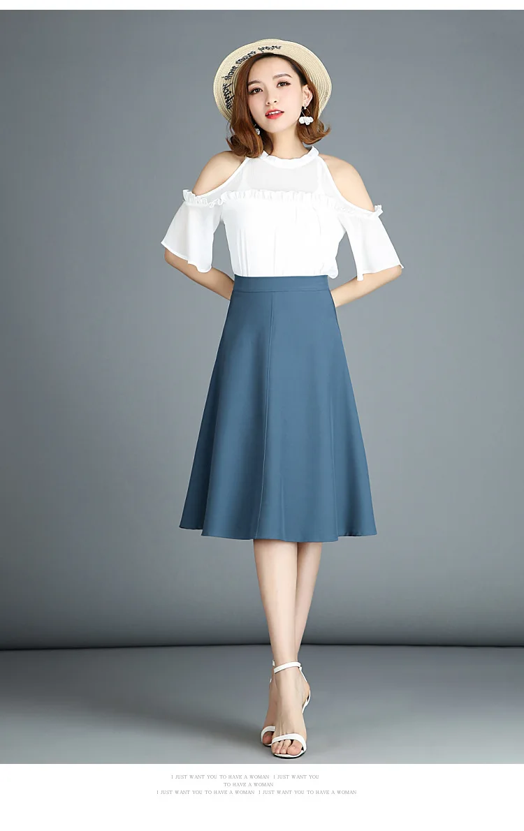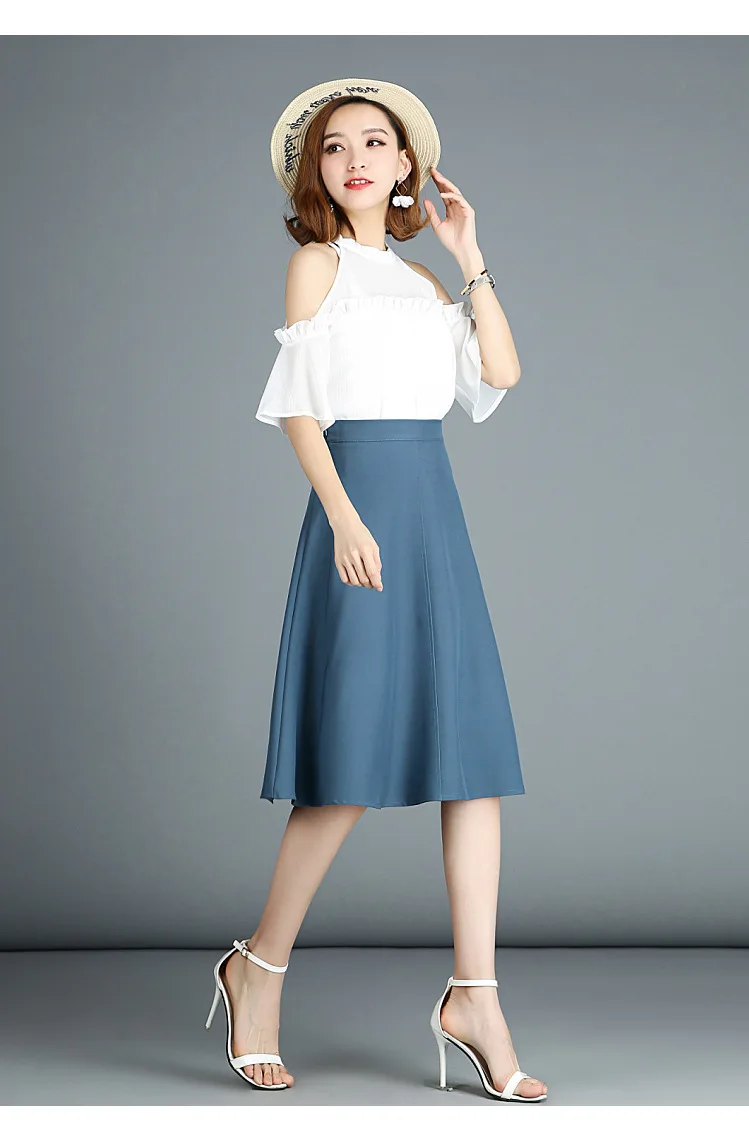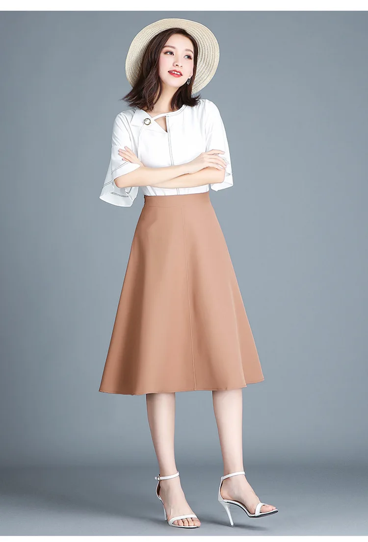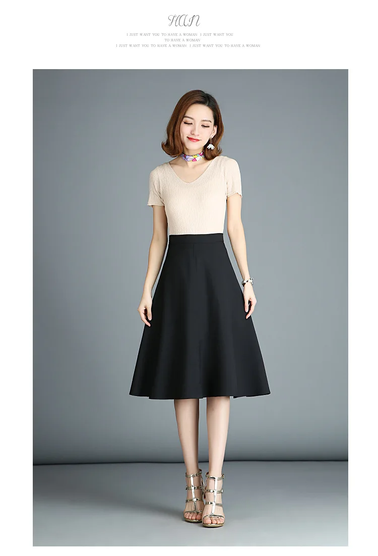 Офисная юбка миди с высокой талией для женщин 2020 Осенняя рабочая одежда плиссированная трапециевидная женская Юбка Saia синий черный хаки AQ659
