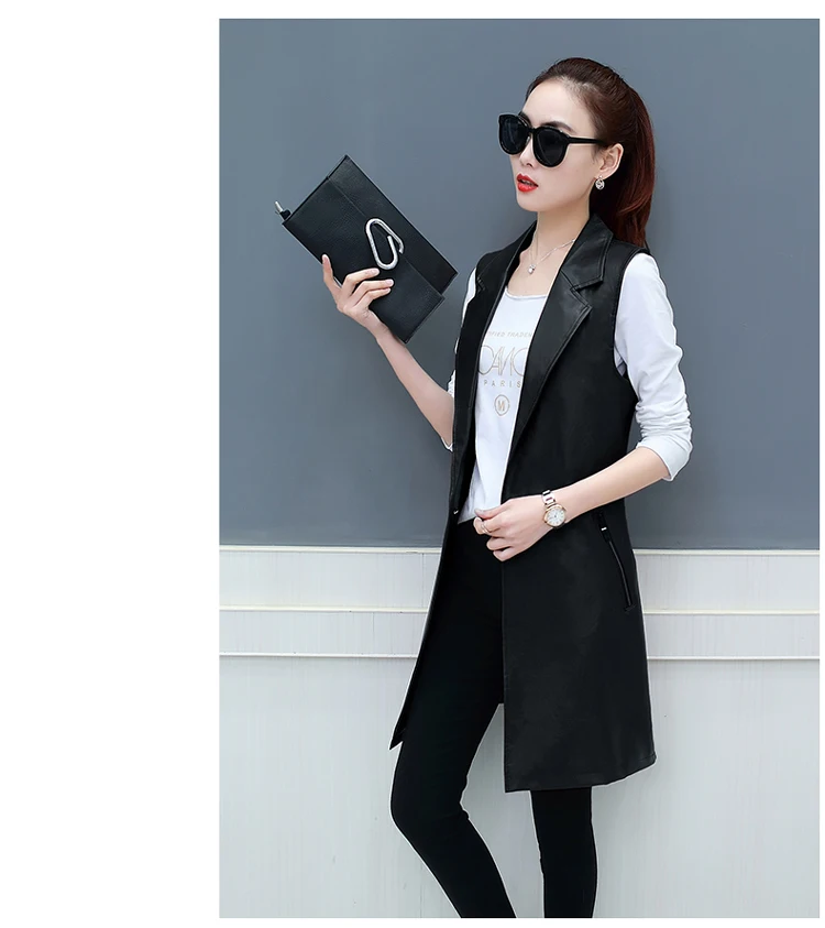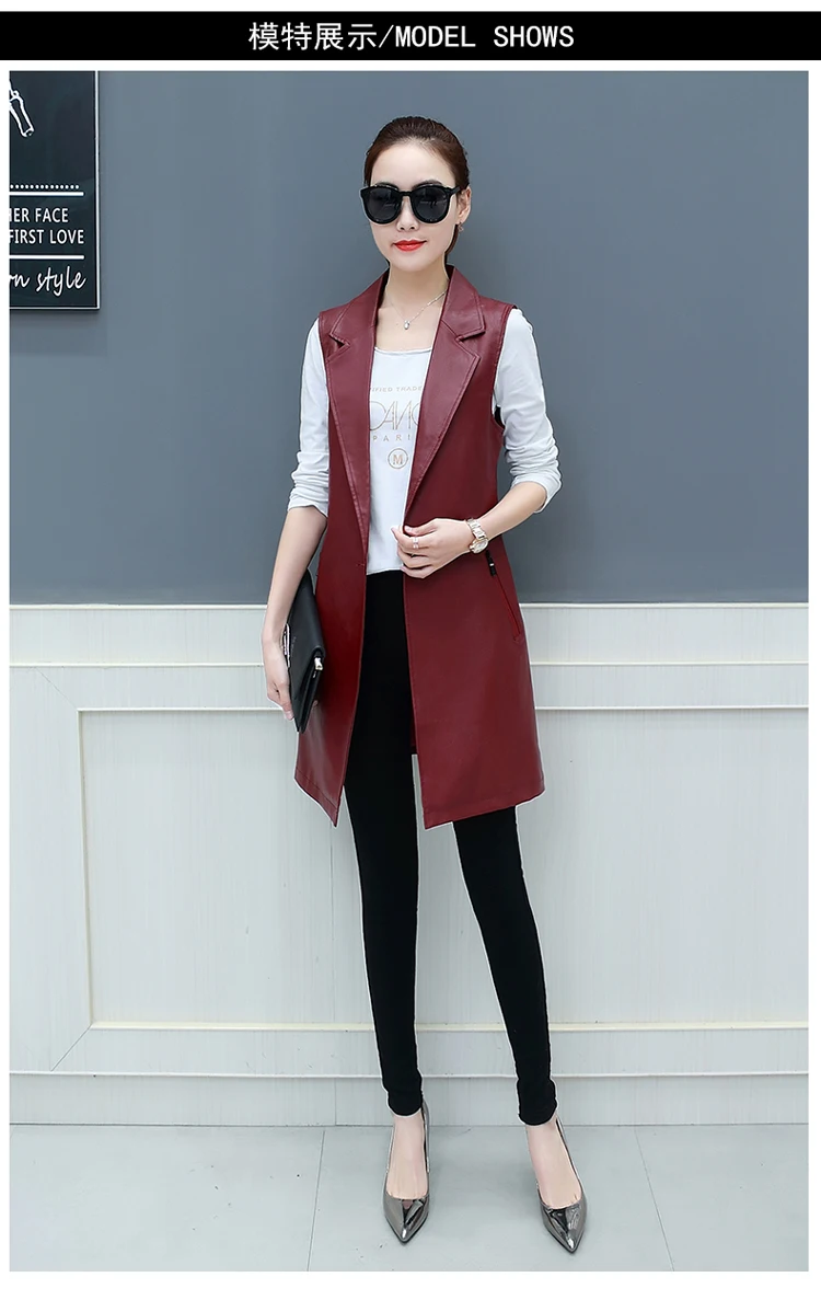 Весенний блейзер из искусственной кожи, жилет, женский длинный Приталенный жилет размера плюс 3XL, куртка без рукавов из искусственной кожи, костюм, жилет, женский элегантный DV512