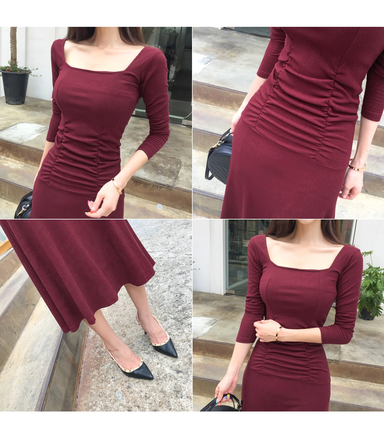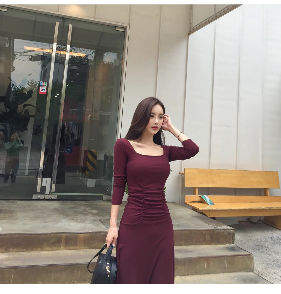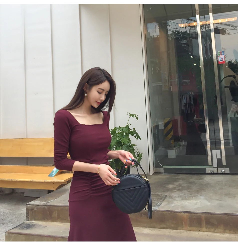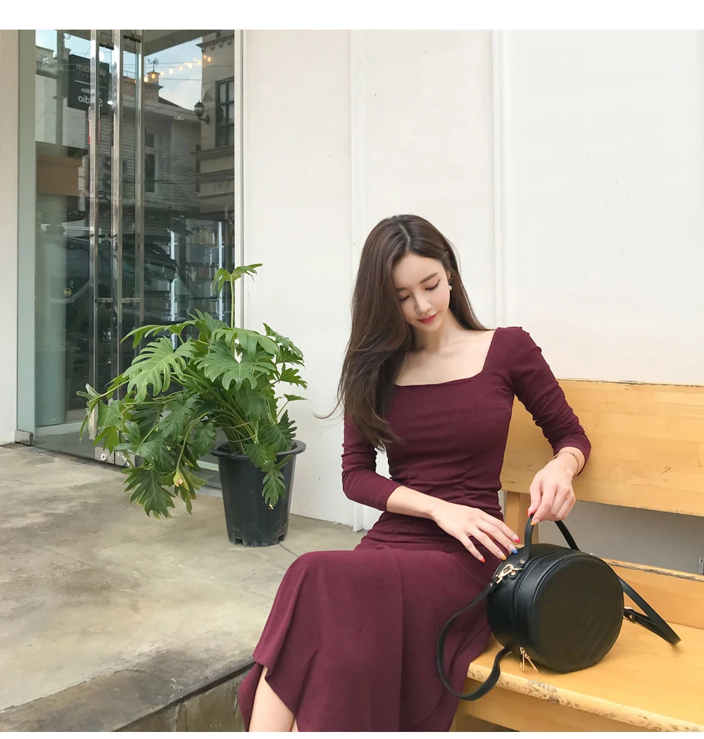 Женское Новое Элегантное Красное Облегающее длинное Обтягивающее Платье-миди с квадратным воротником, вечернее офисное платье для девушек на осень и весну 2020 DC865 <