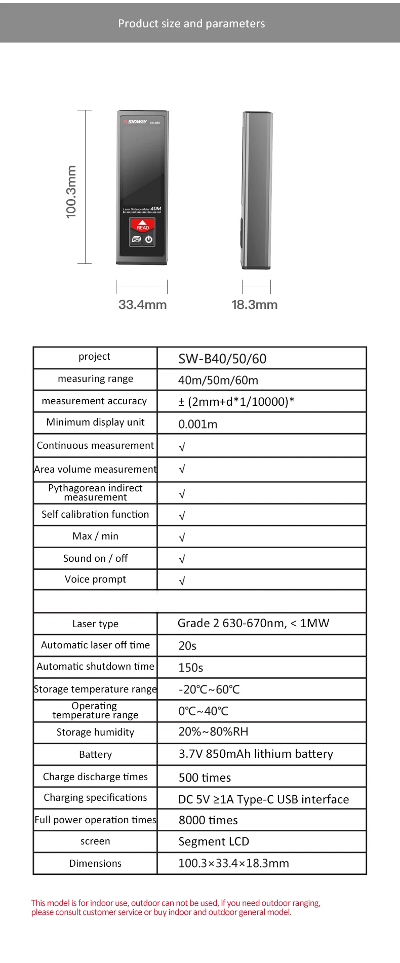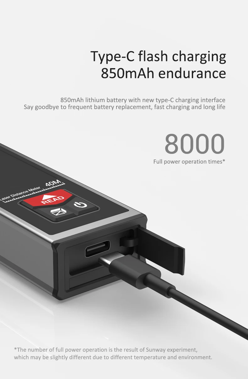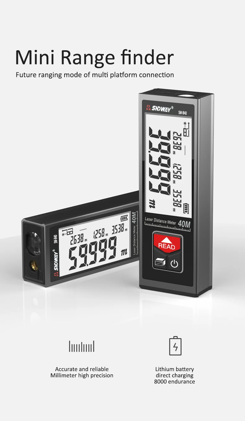 SndwayЛазерный дальномер обеспечивает быстрое, легкое и точное измерение, идеально подходит для украшения интерьера, переделки, напольных и настенных покрытий, оценки и оценки недвижимости.Один человек может увеличить размер работы за считанные секунды