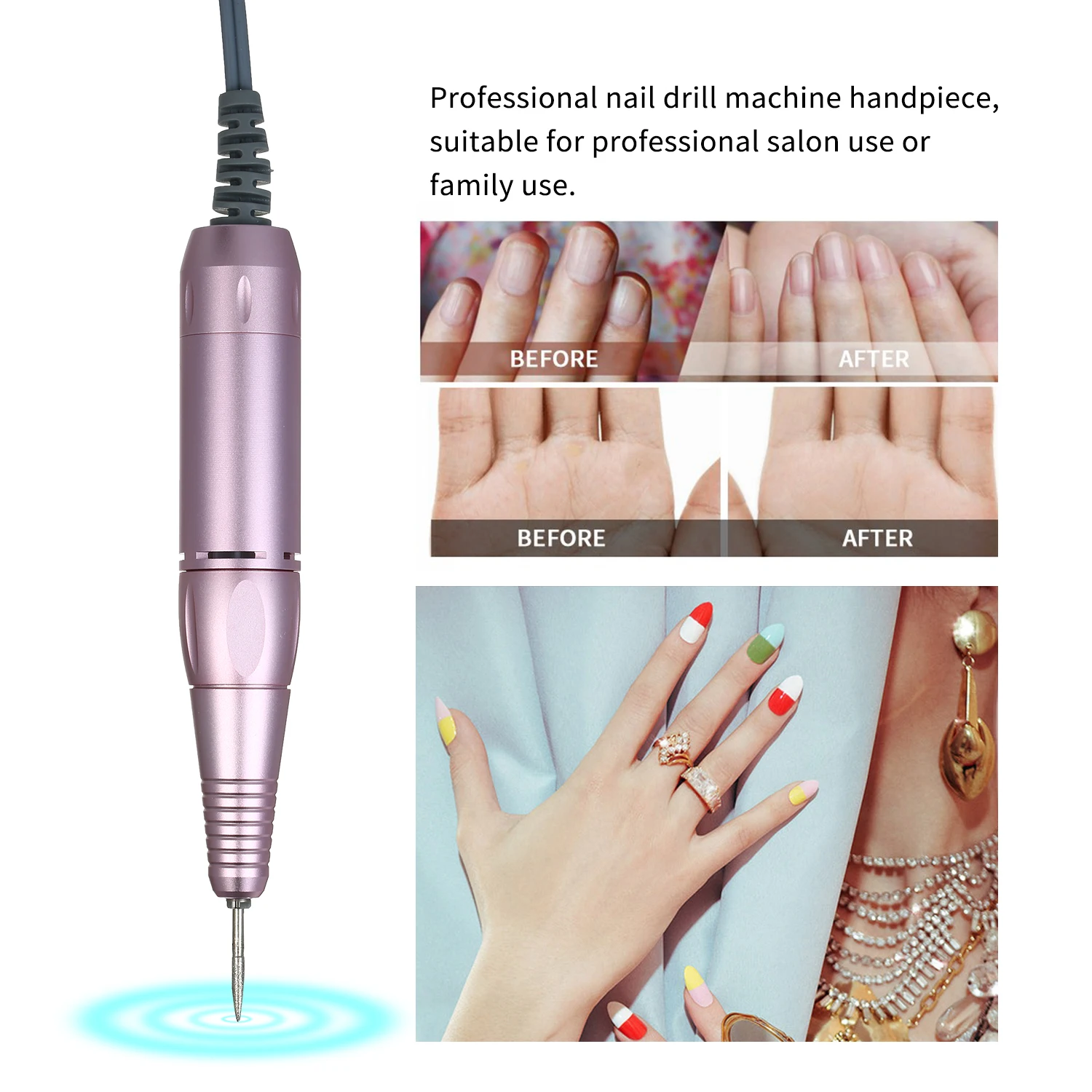 Ручки для маникюра и дизайна ногтей. Изготовлен из высококачественного материала, прочный и прочный. Низкий уровень шума, низкий уровень вибрации. Скорость вращения может достигать 30000 об/мин. Подходит для педикюра и маникюра, маникюра и педикюра.
