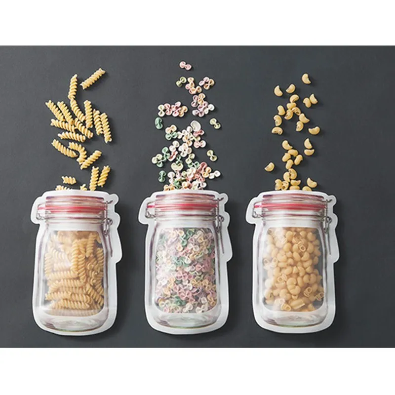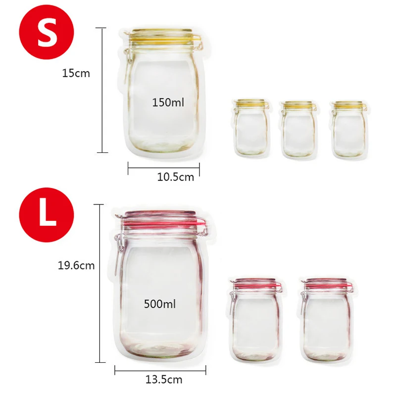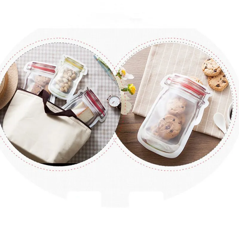 Сумки для закусок модного дизайна: модный дизайн в форме банки Мейсон, защищает свежесть для различных закусок, просто заполните пакет для хранения еды, застегните молнию и положите в кошелек, книжный пакет или холодильник.