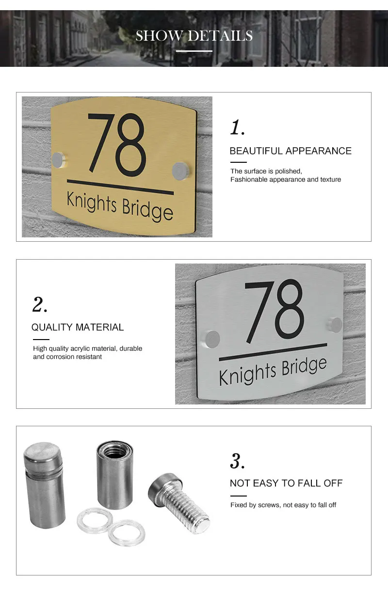 Табличка для номера дома на заказ, табличка для двери, улица, имя, настенная табличка-золото, серебро