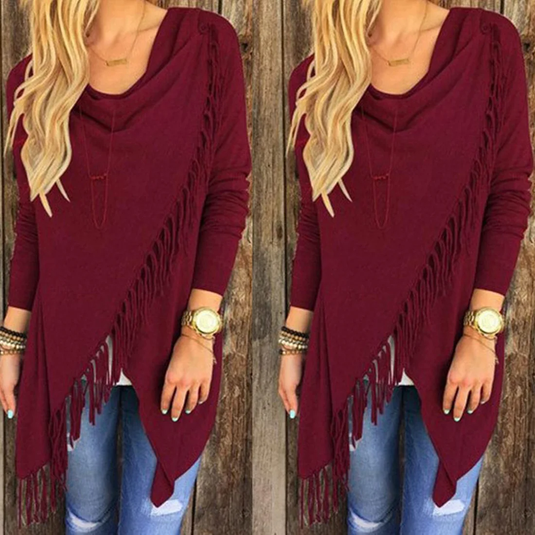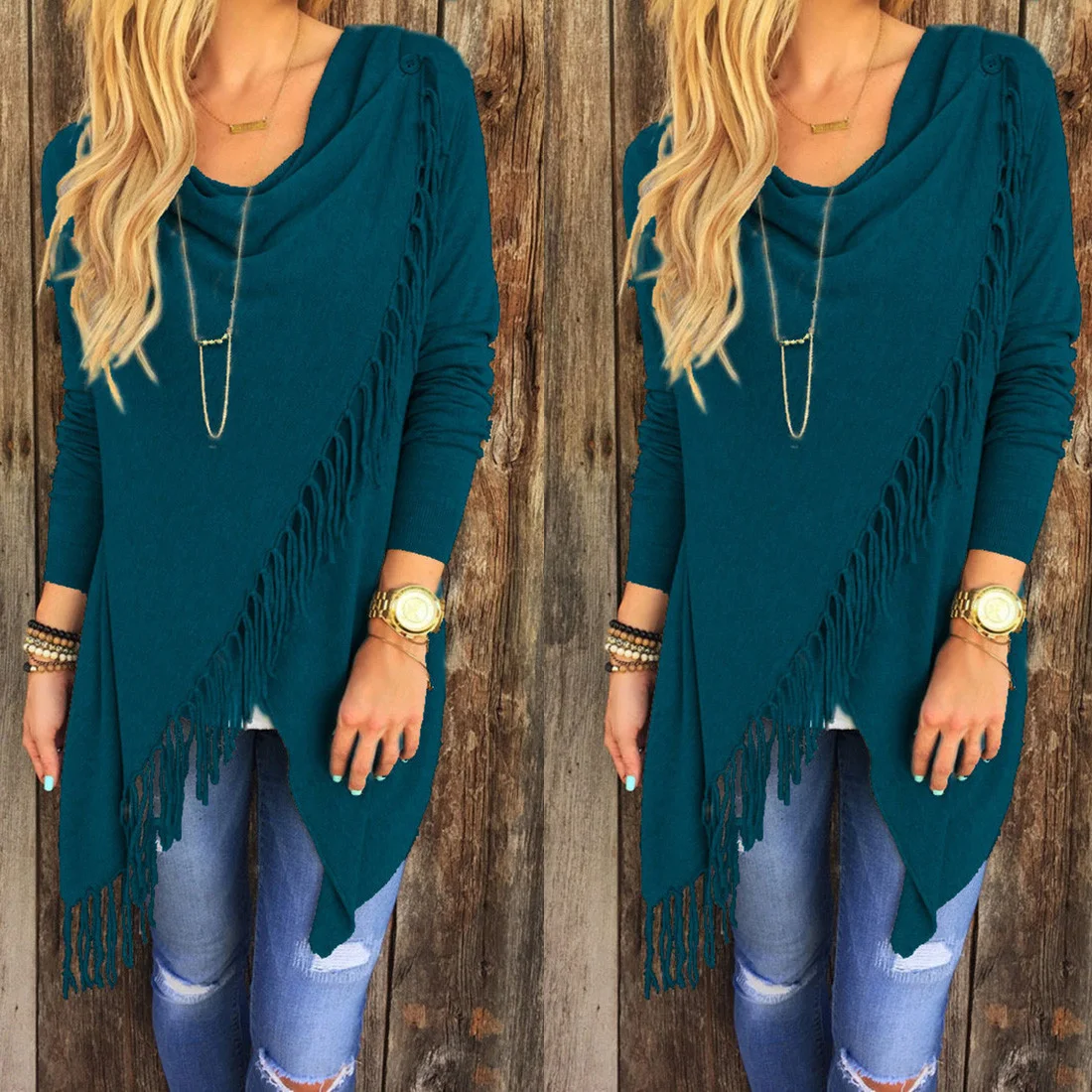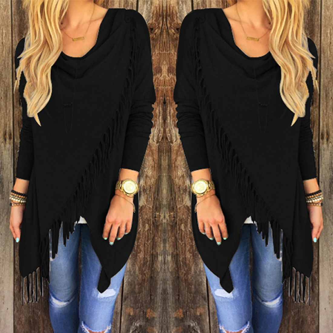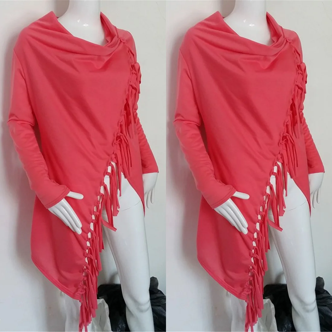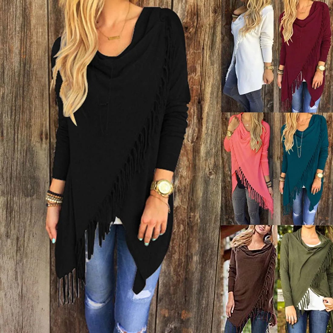 Женский асимметричный кардиган с воротником-хомутом и кисточками, повседневный свободный свитер с длинным рукавом
