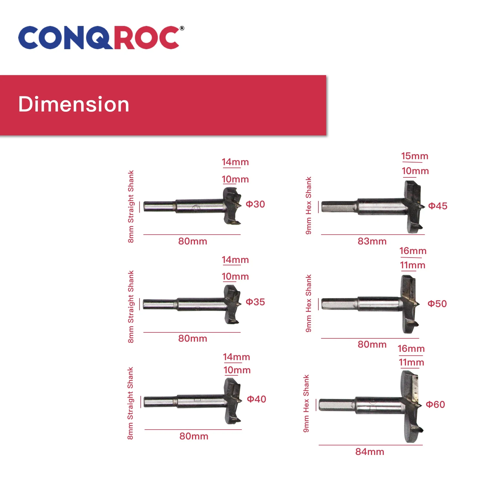 -Цвет: серебристый -Тип: сверло Forstner -Материал: Высокоуглеродистая сталь -Тип лезвия: дуговая кромка -Диаметр сверления: 30 мм, 35 мм, 40 мм, 45 мм, 50 мм, 60 мм