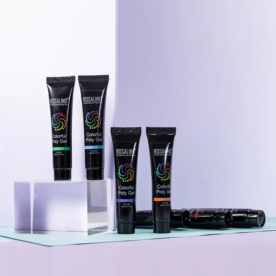 Цветной полигель-лак для ногтей ROSALIND для наращивания дизайна ногтей красочный строительный гель для маникюра Набор лаков для ногтей