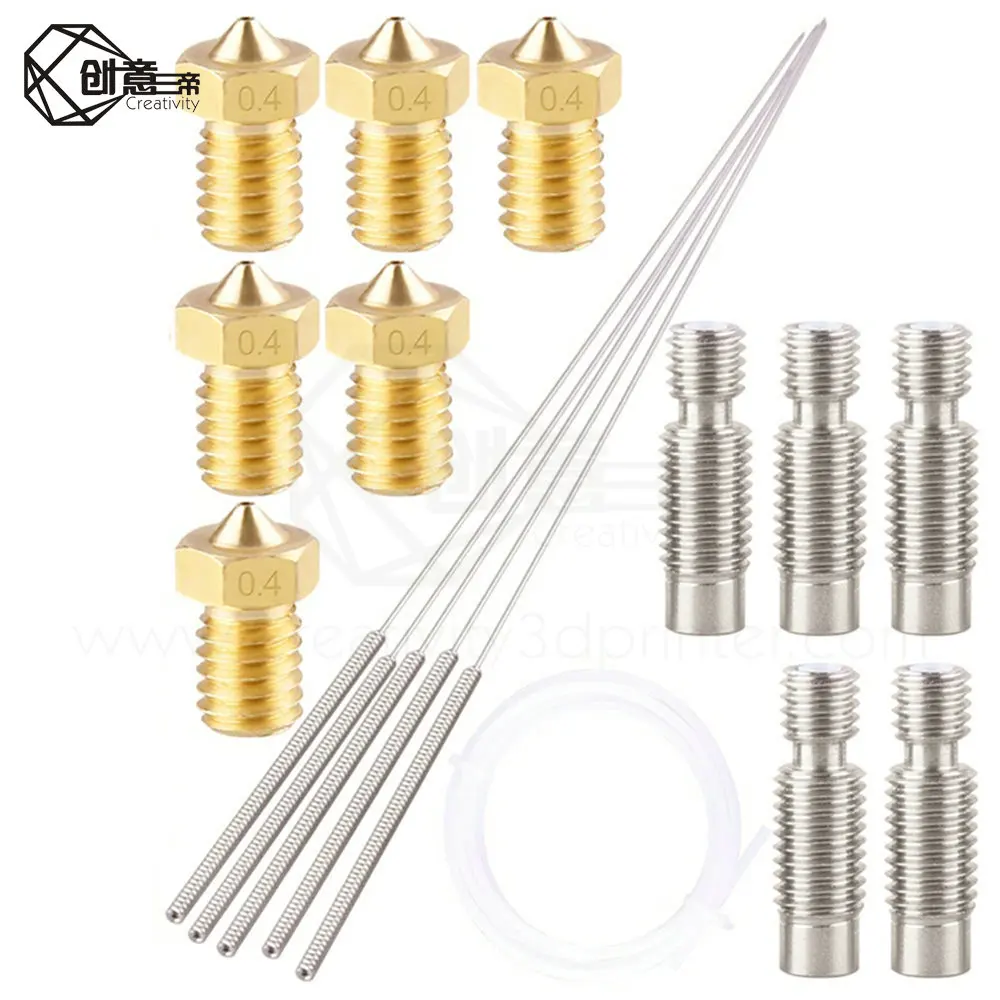 Латунное сопло: Входной диаметр: 1,75 мм, диаметр: 0,4 мм, размер: 5*13 мм, материал: латунь, углеродистая сталь, цвет: золотой.Горло: Внутренний диаметр: 4 мм, тефлоновое покрытие внутренний диаметр: 2 мм, Длина: 30 мм, диаметр нити: 1,75 мм.Трубка из ПТФЭ: Внешний диаметр: 4 мм, Внутренний диаметр: 2 мм, материал: ПТФЭ (политетрафторэтилен), плотность: 2,15-2,20 г/см PTFE 3; Термостойкость, до 260 градусов, цвет: белый.Игла для очисткиМатериал: нержавеющая сталь; Диаметр сверла: 0,4 мм.СовместимостьСовместим со всеми 1,75 мм E3D V6 Makerbot 3D принтерами.Примечание: Эти головки 3D-принтера являются небольшими частями, пожалуйста, держите подальше от детей, чтобы избежать случайного глотания.Посылка включает: