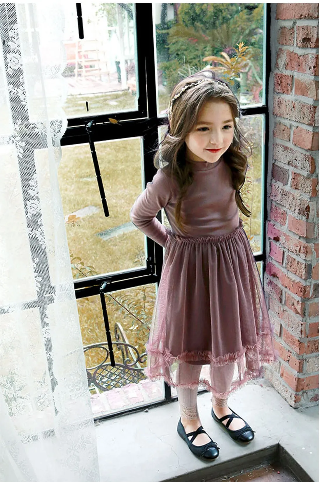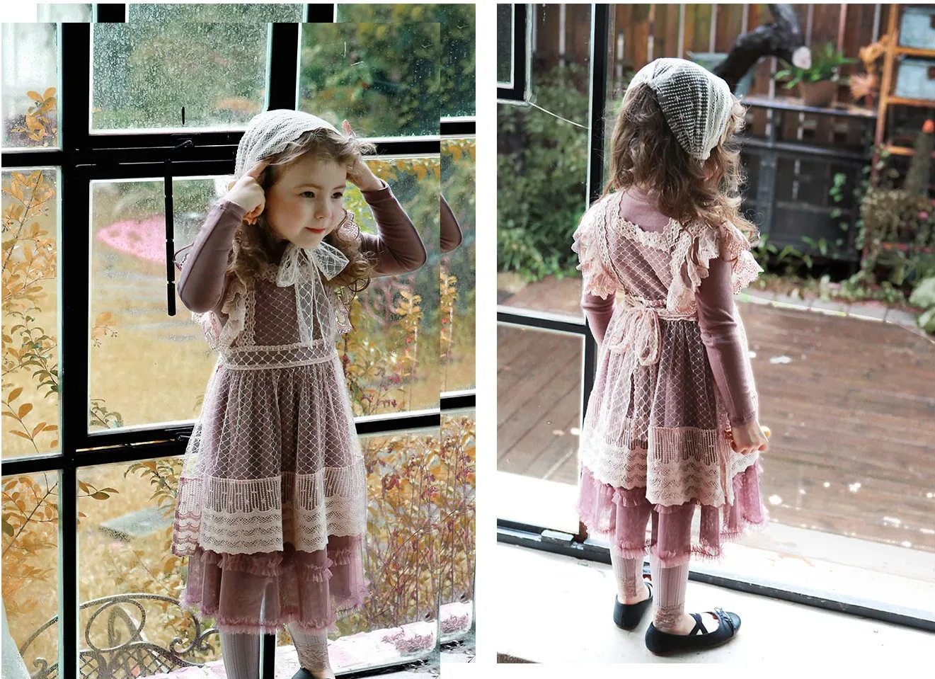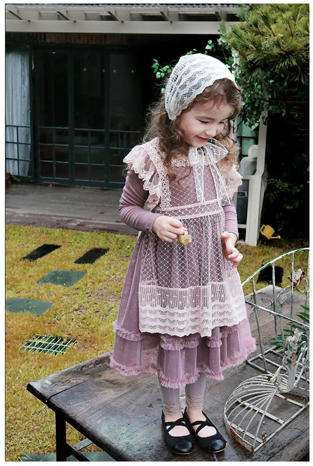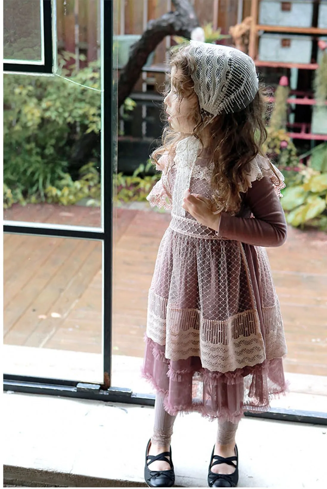 Color: purple beige Fabric:Cotton Lace mesh Fits agage: 4 5 6 7 8 9 10 11 12 13 14 15 16 Years