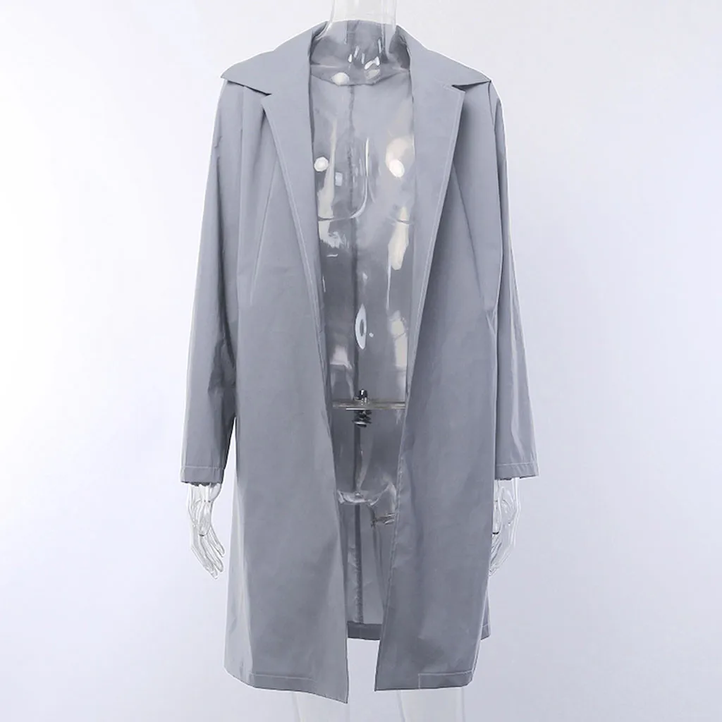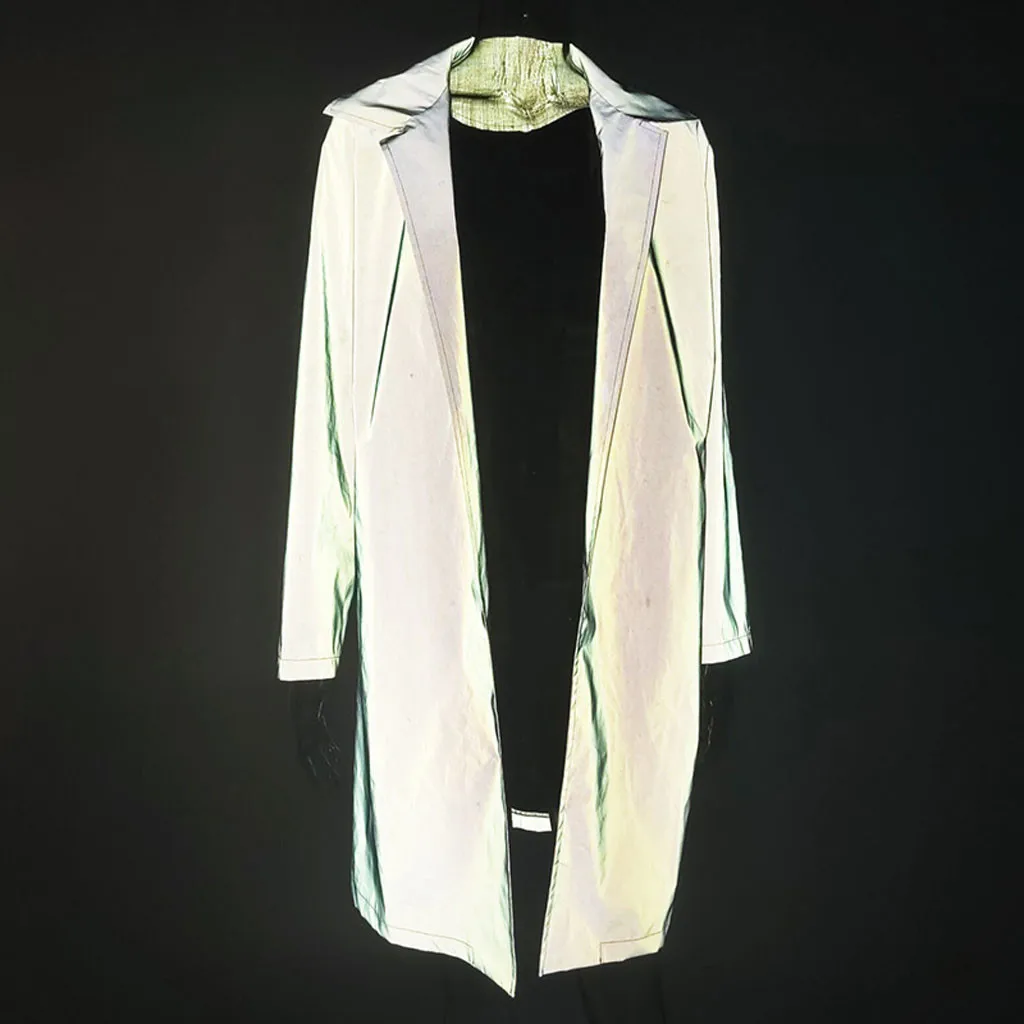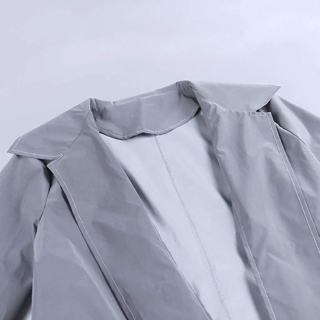 Женская мода уличный отложной воротник светоотражающий длинный ветровка пальто кардиган
