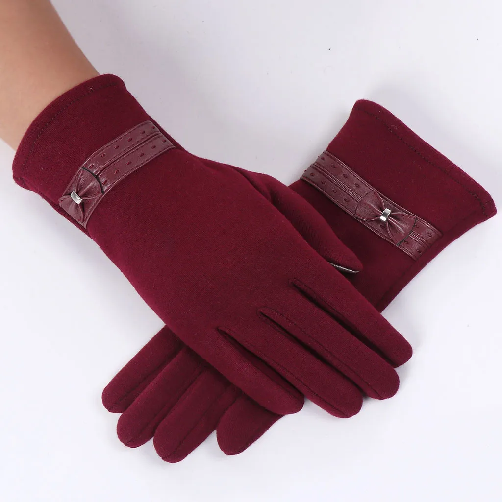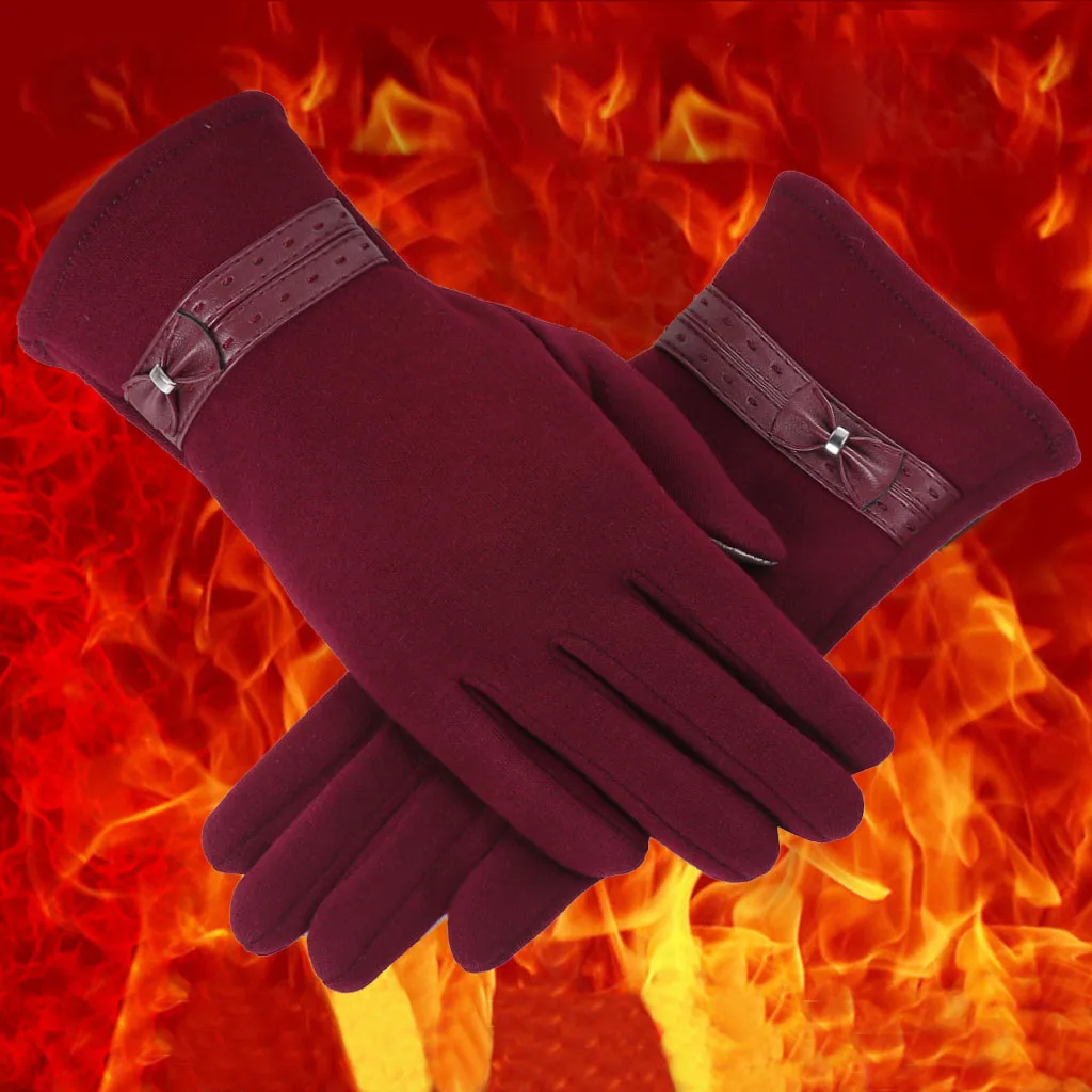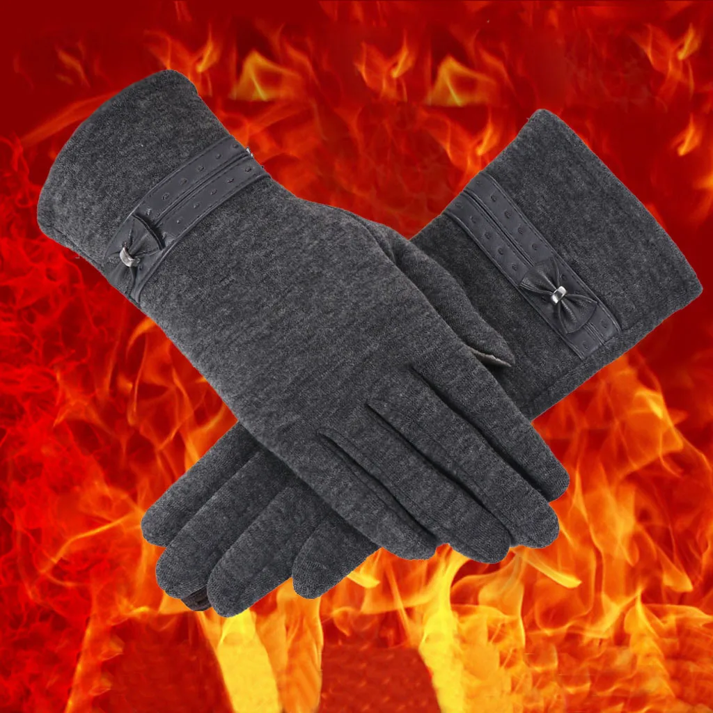 Женские зимние теплые перчатки с бантиком, утепленные варежки