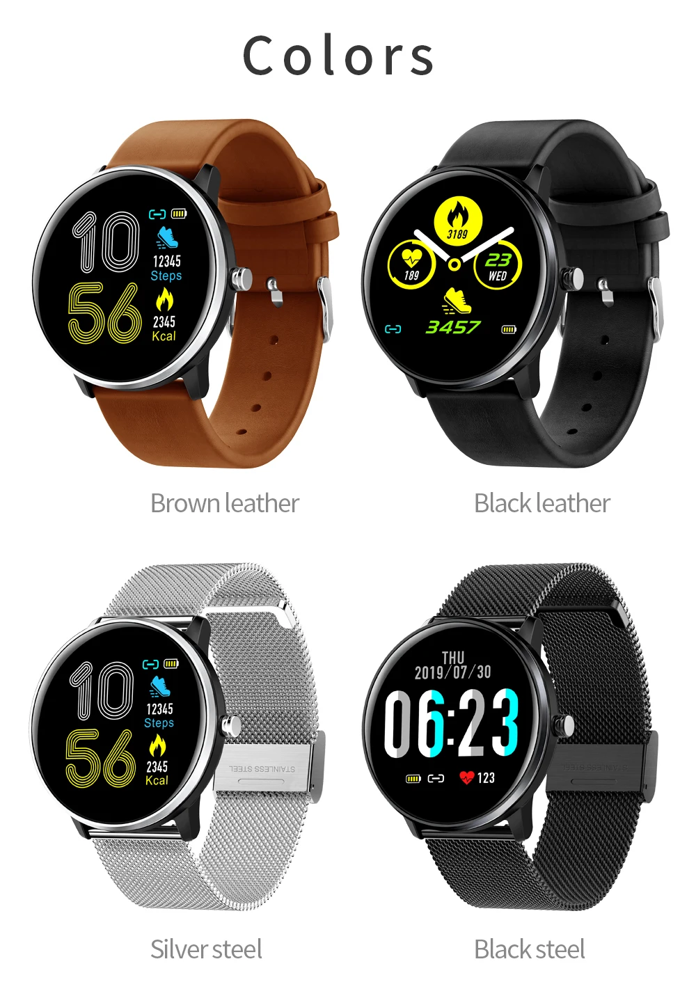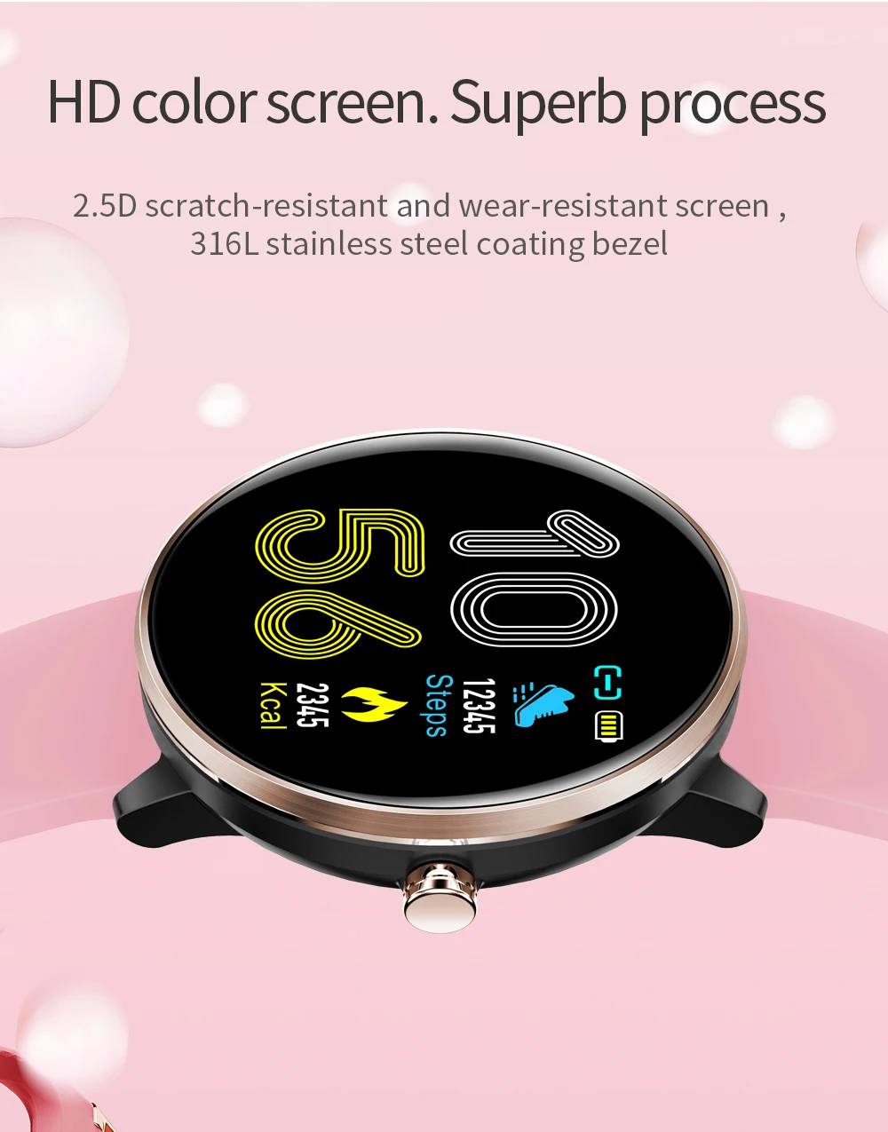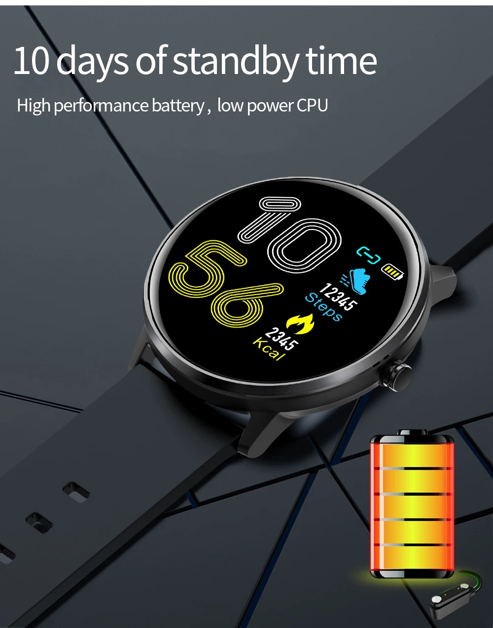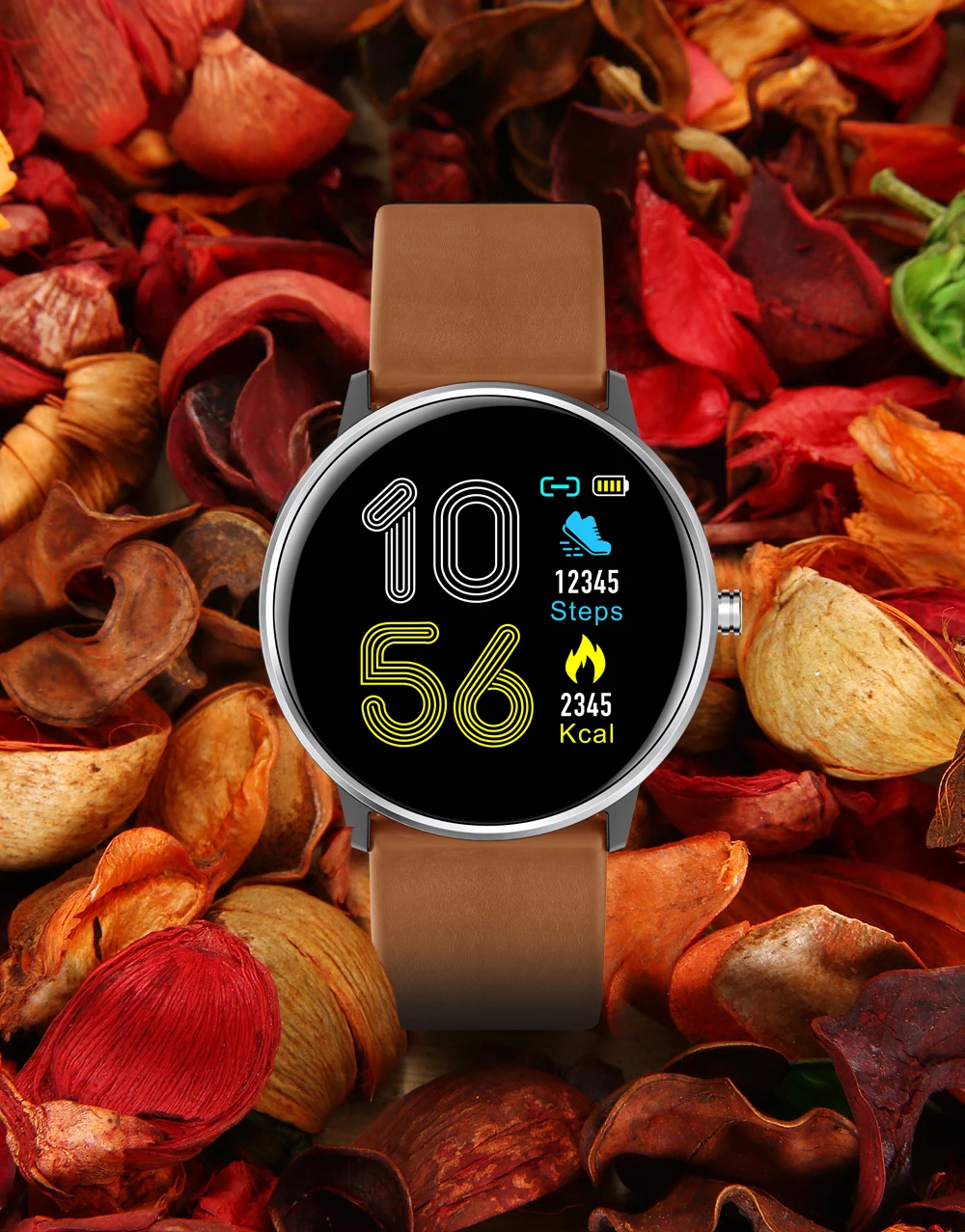 * 1,3 дюйма полный сенсорный экран Smartwatch --- класс водонепроницаемости IP68, он является водонепроницаемым при мытье рук или попадании под дождь. (Не надевайте его в тепловую воду или сауну)