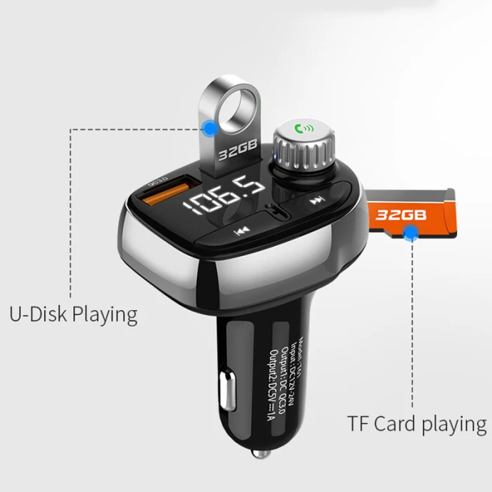 Car Charger Bluetooth MP3 Player FM Music Radio Wireless Hands-free Dual USB V-Best