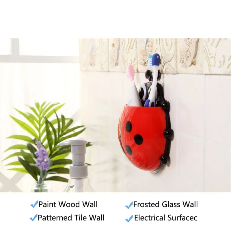 1. Настенный держатель зубной щетки в форме божьей коровки из мультфильма может сделать раковину вашей ванной комнаты намного тише, в то же время, это также милое домашнее украшение.