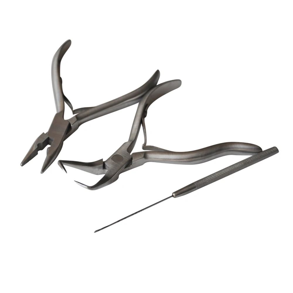 Микро кольцо из нержавеющей стали для наращивания волос и инструмент для работы с бисером Набор плоскогубцев (3 шт.) микро звено/штопор для бисера/штопор/крючок