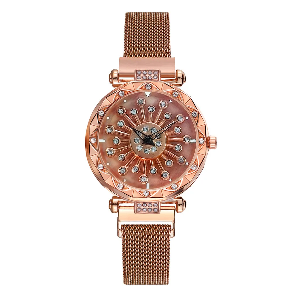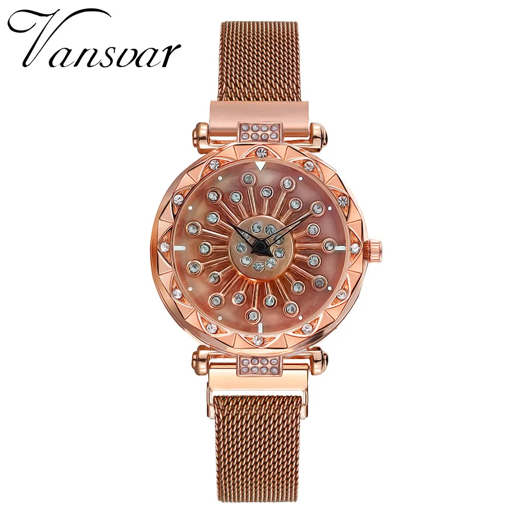 Vansvar женские часы 360 Поворот повезло с цветочным рисунком из сетчатой ткани мессенджер через плечо на магнитной застежке часы роскошные часы с бриллиантами из розового золота Для женщин кварцевые наручные часы