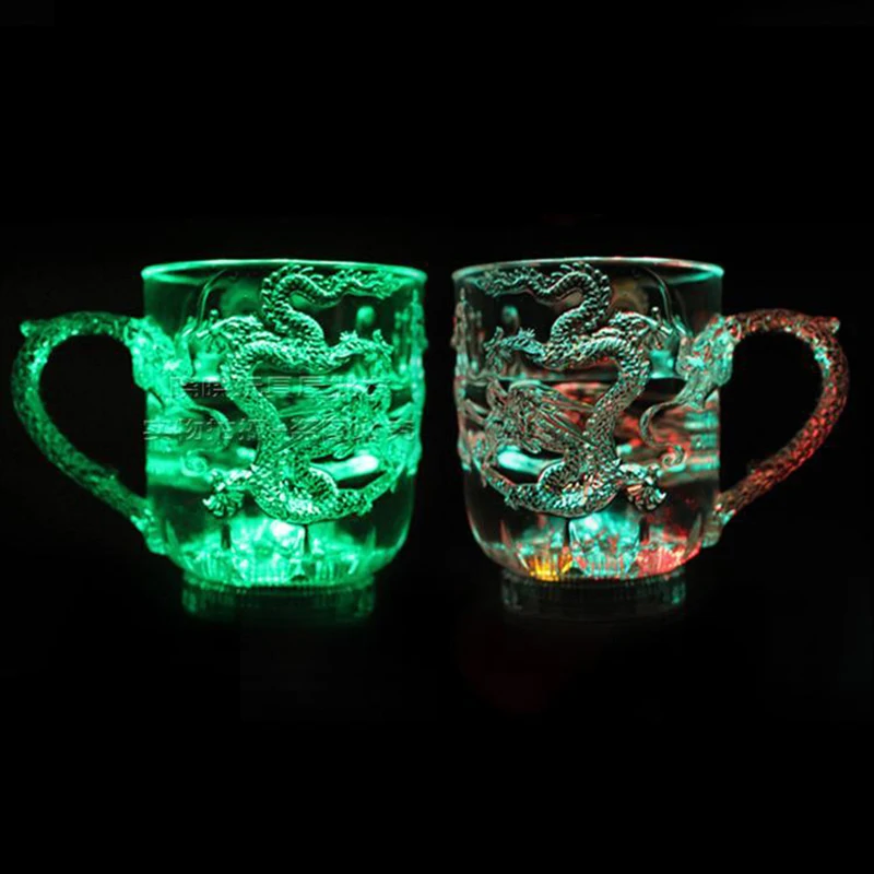 Светодиодный светильник, меняющий цвет, чаша с драконом, активированный водой, кружка для пива, виски