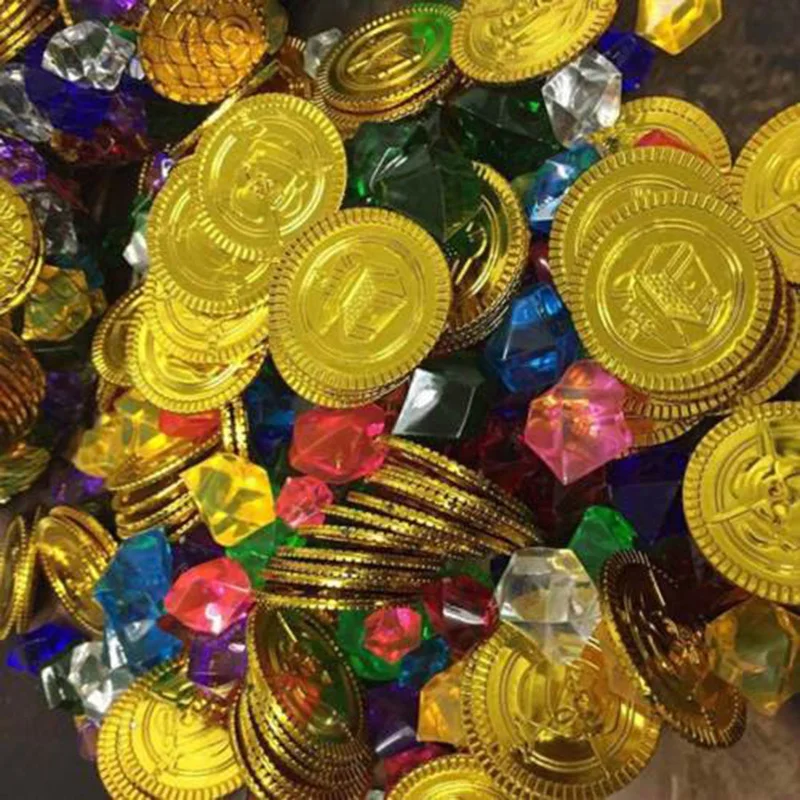 100 шт ПоддельныеКамней бриллианты20 шт.Пиратские монеты сокровище детей игровой набор игрушек