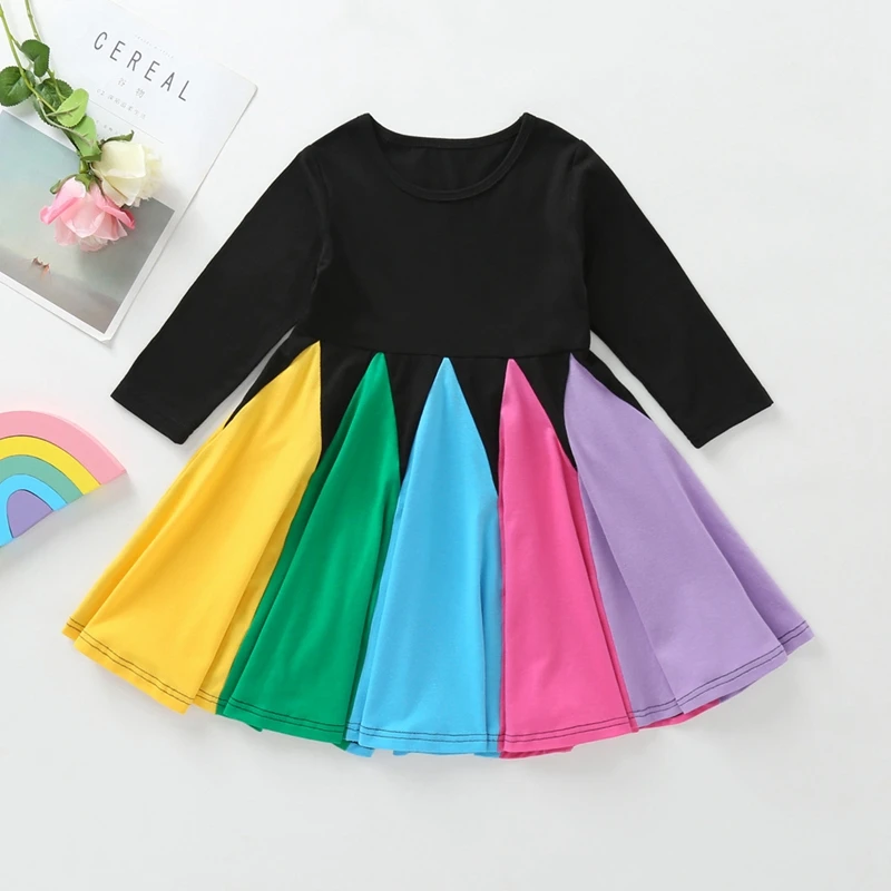 1-7 Years Kids Dress Winter Girls Party Dress Rainbow Long Sleeve Baby Dress Children Clothes 2019 Christmas Girls Costumes
