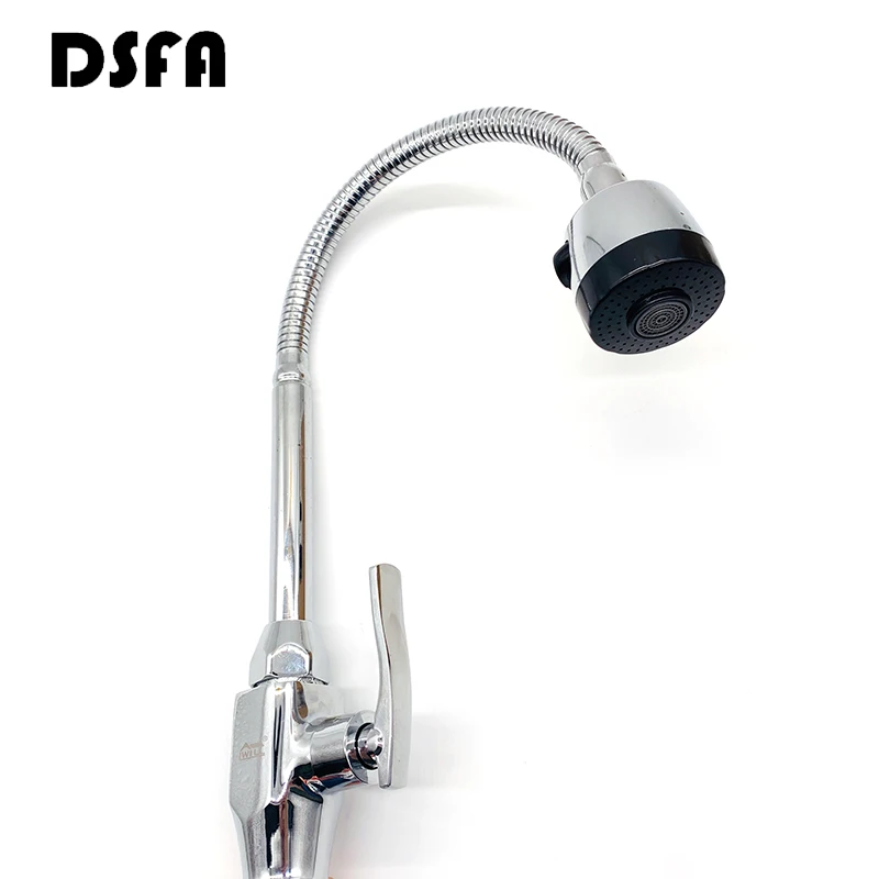 Вращающийся на 360 градусов одиночный холодный кран Твердый латунный корпус кухонный смеситель для умывальника с двумя зубчатыми режимами с одной ручкой кухонный кран
