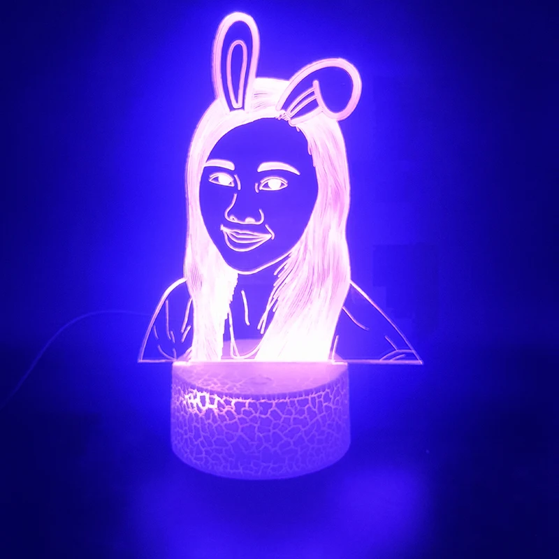 1 акриловая панель 1 кабель питания micro USB 1 x3D светодиодный ночникПодвал Флуоресцентный1. Увеличение яркости 2. Уменьшение яркости 3. Выключение 4. Включение 5. Выбор цвета-статический цвет