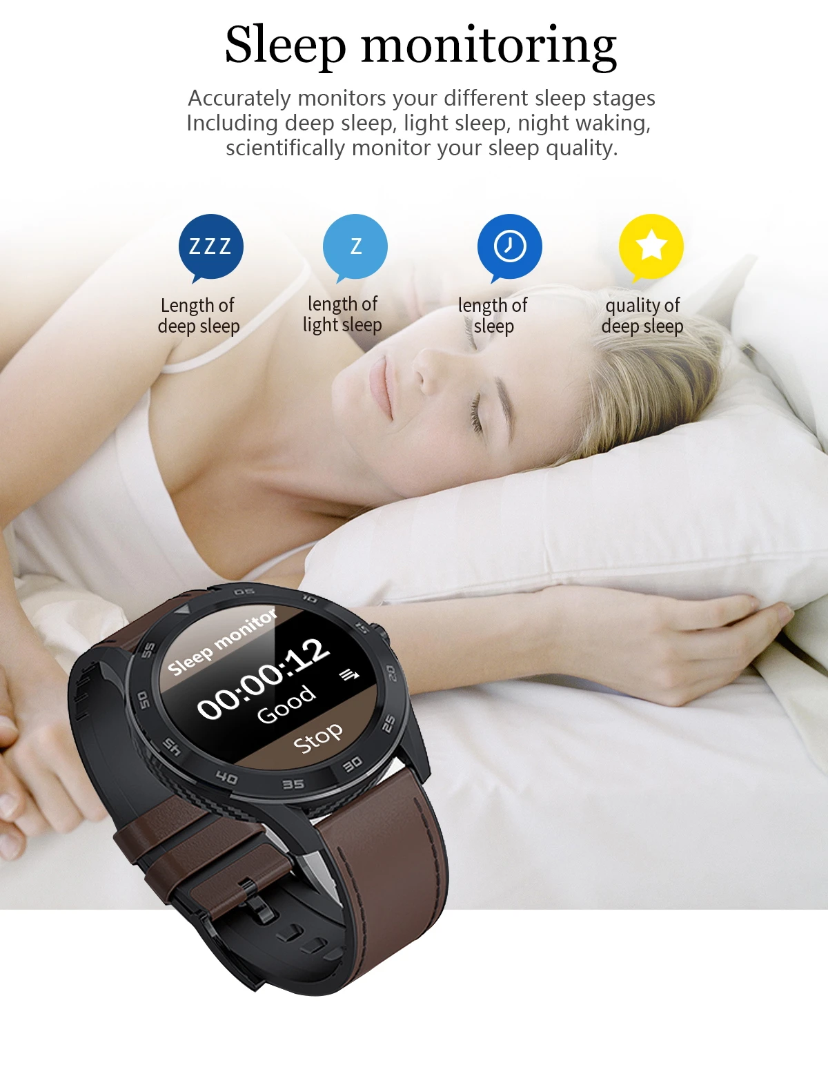 Точно отслеживает ваши различные стадии сна Включая глубокий сон светильник сон, ночное пробуждение, С научной точки зрения следите за качеством сна.