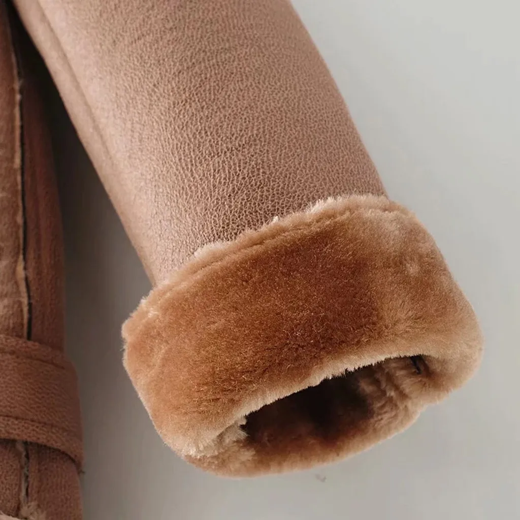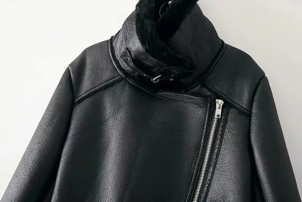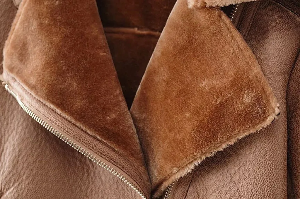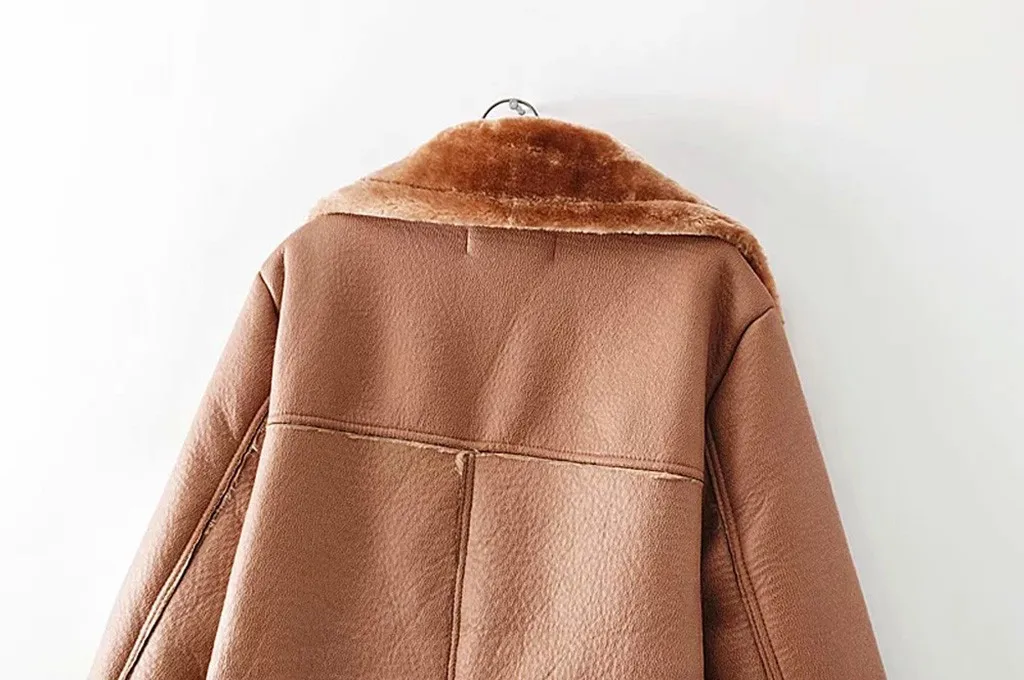 Женское пальто с длинным рукавом, на молнии, с карманом, с отложным воротником, плюшевая куртка