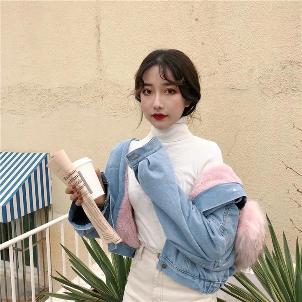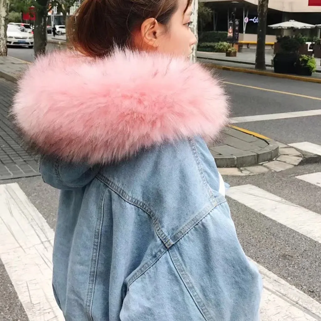 Women Warm Denim Short Coat Collar Jacket Slim Winter Hooded Outwear Coats