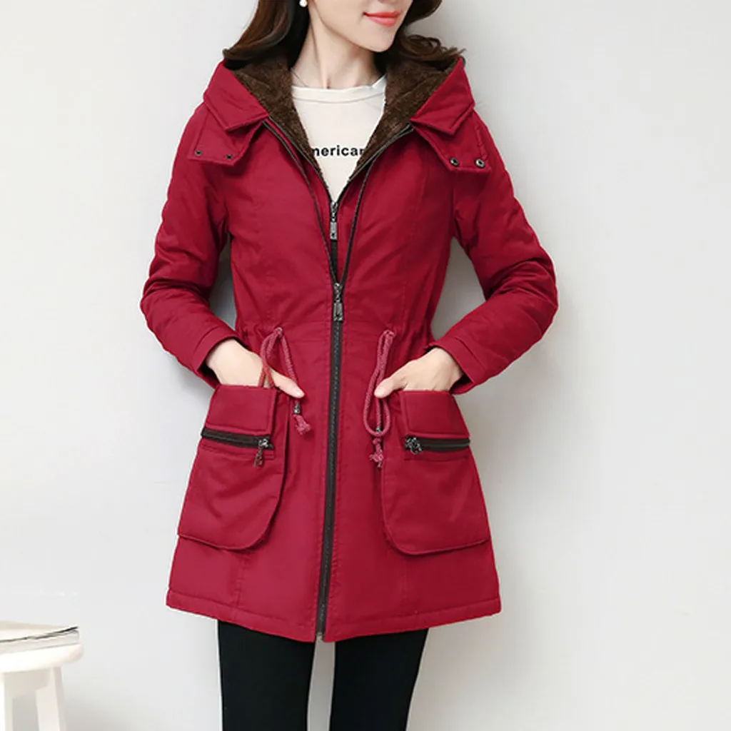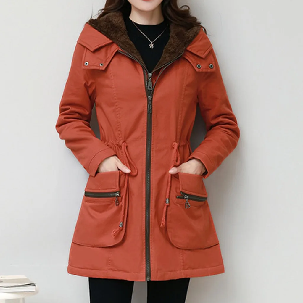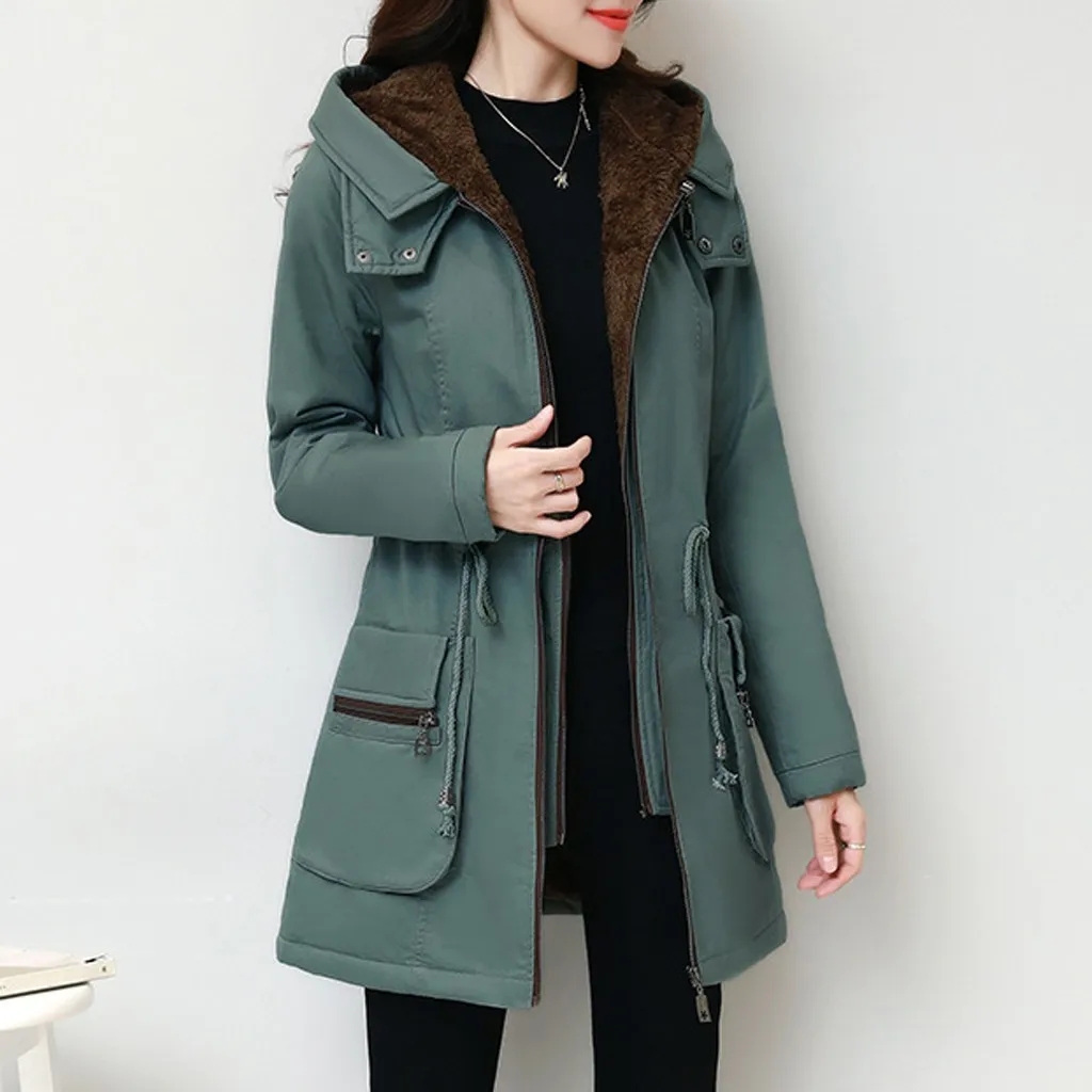 Женская модная Свободная верхняя одежда, однотонные куртки с хлопковой подкладкой, пальто с капюшоном и карманами