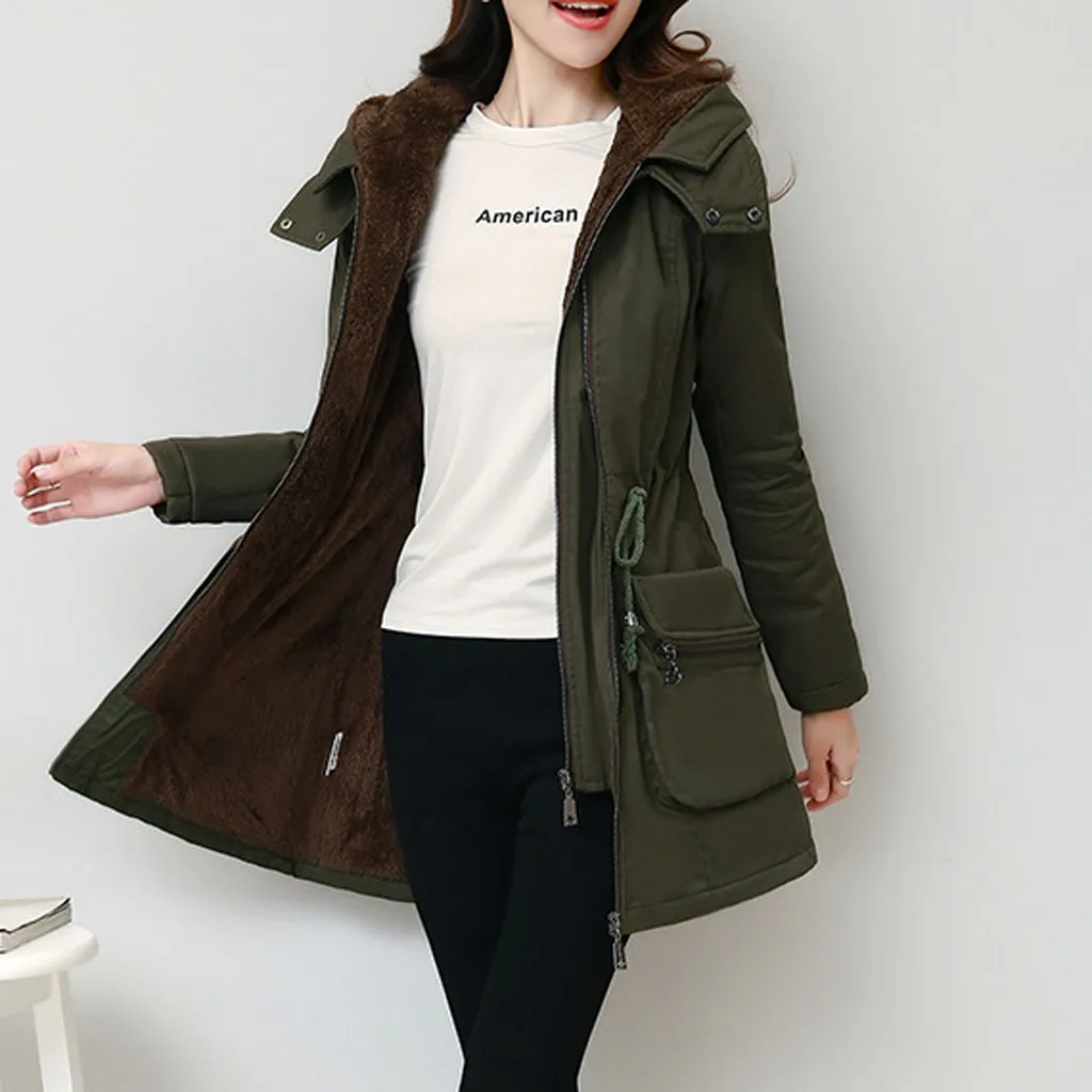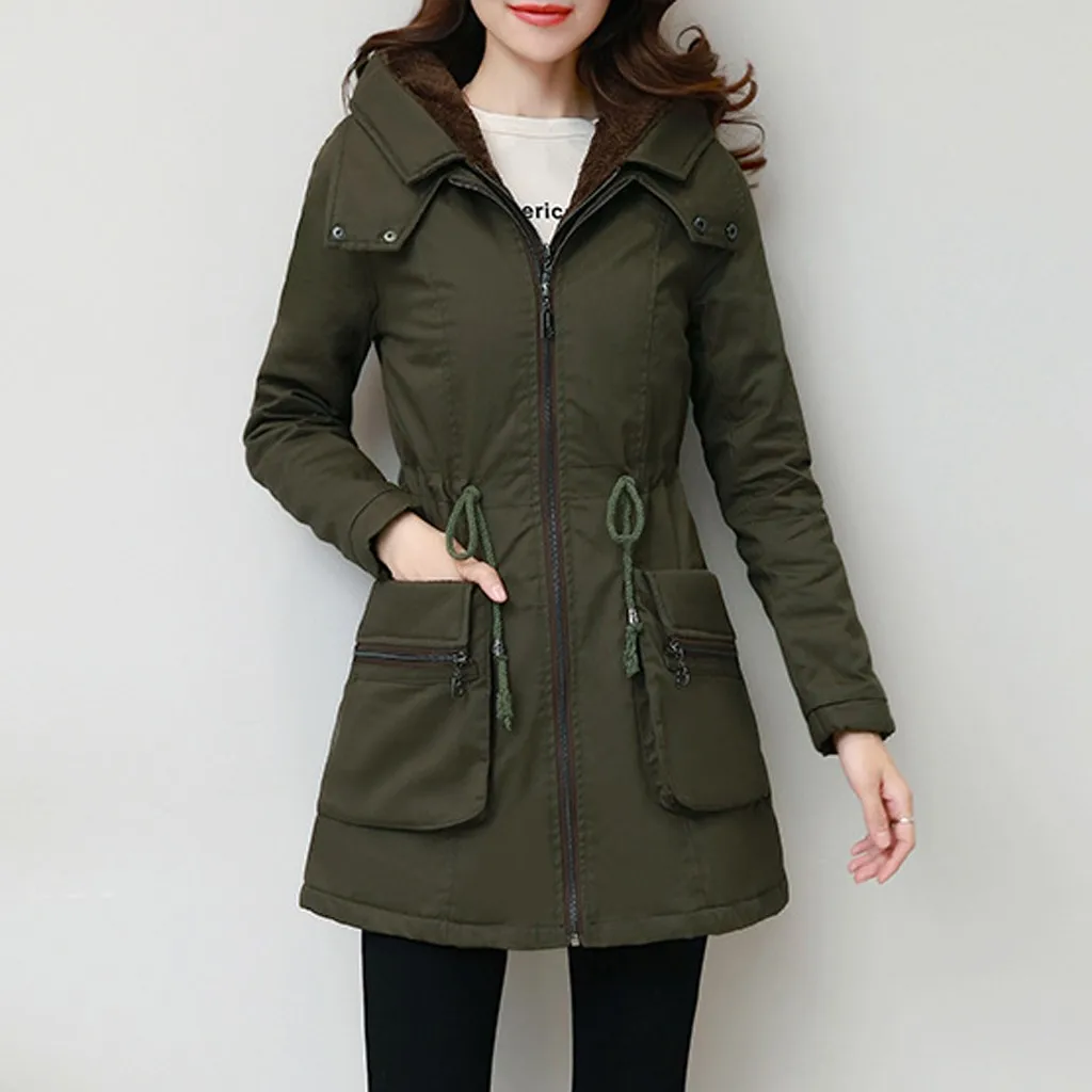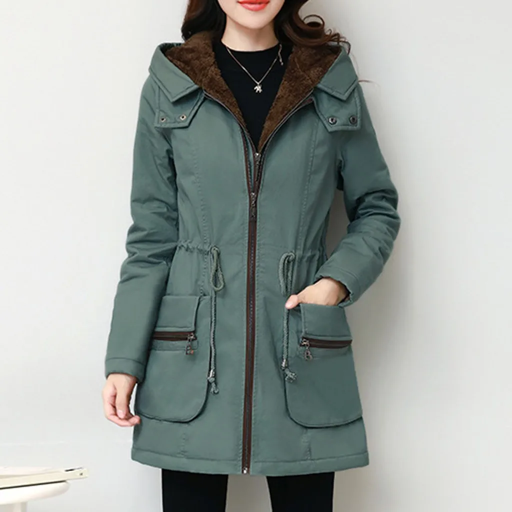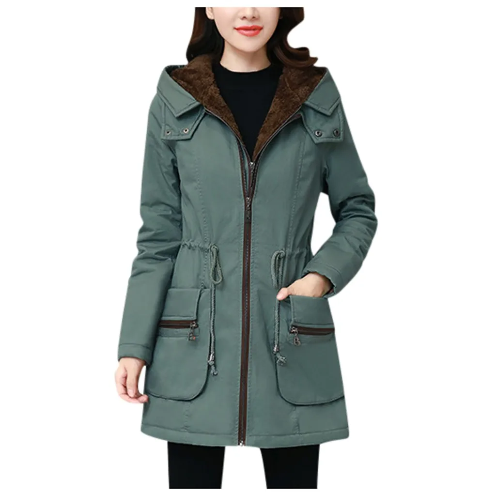 Женская модная Свободная верхняя одежда, однотонные куртки с хлопковой подкладкой, пальто с капюшоном и карманами