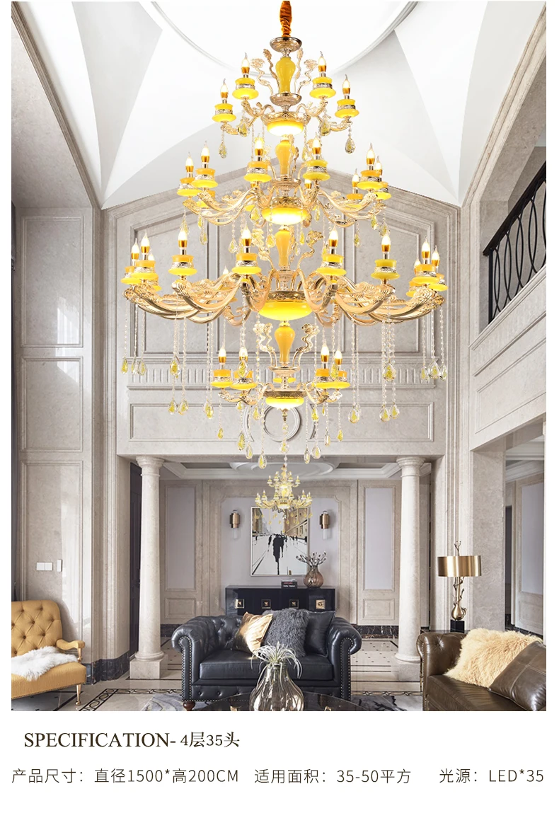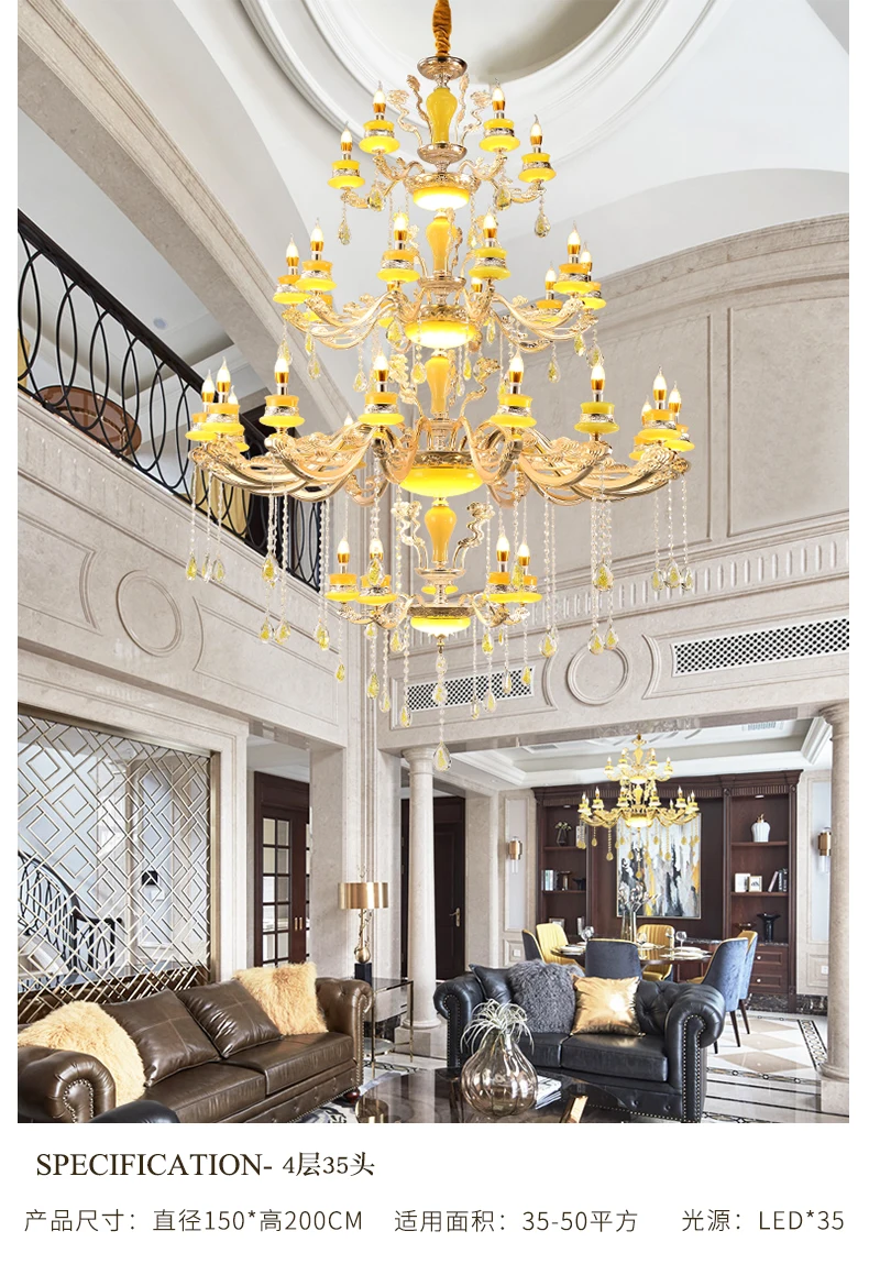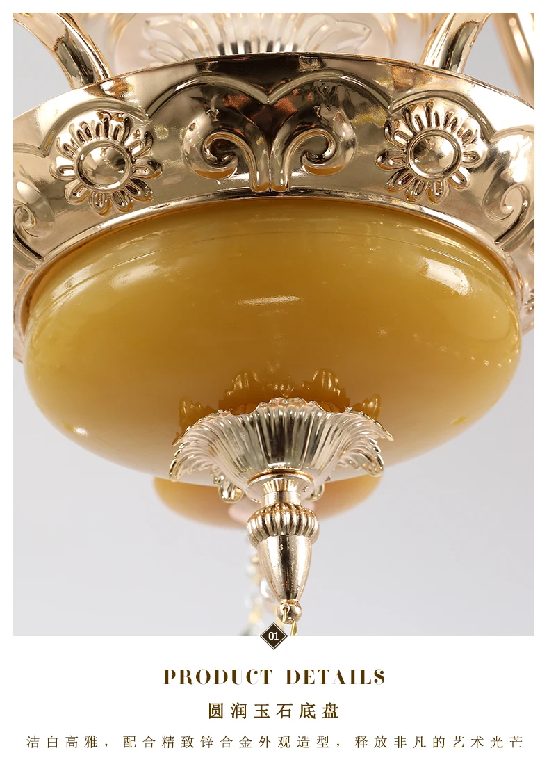Европейская роскошная светодиодная люстра Материал: цинковый сплав + нефрит + хрусталь Источник светильник: E14 с лампочкой Размер: 18 головок диаметром 120 см 24 головки-Диаметр 120 см 30 головок-диаметр 150 см 35 головок-диаметр 150 см Напряжение: от 90 В до 260 В переменного тока Применение: гостиная, спальня, домашний декор, прихожая, коридор, проход, балкон и т. д.