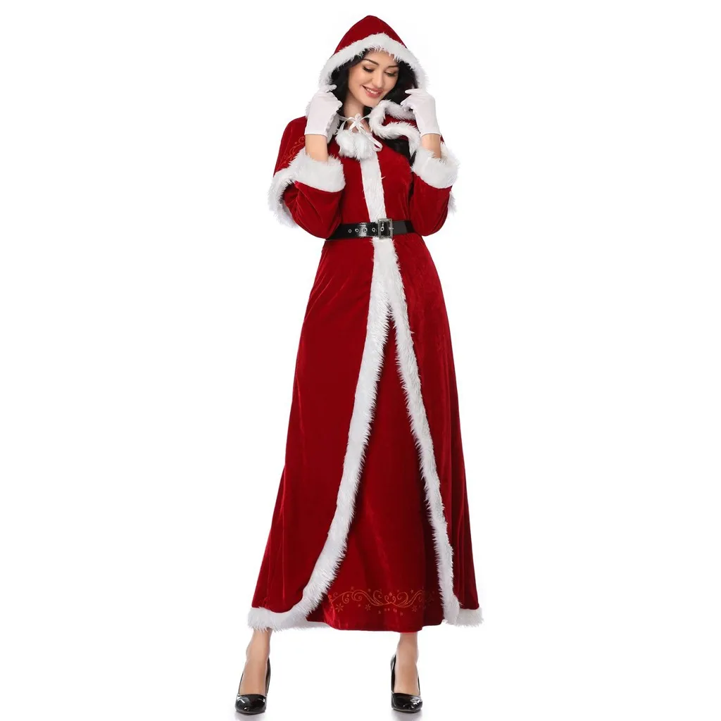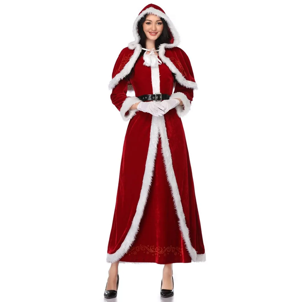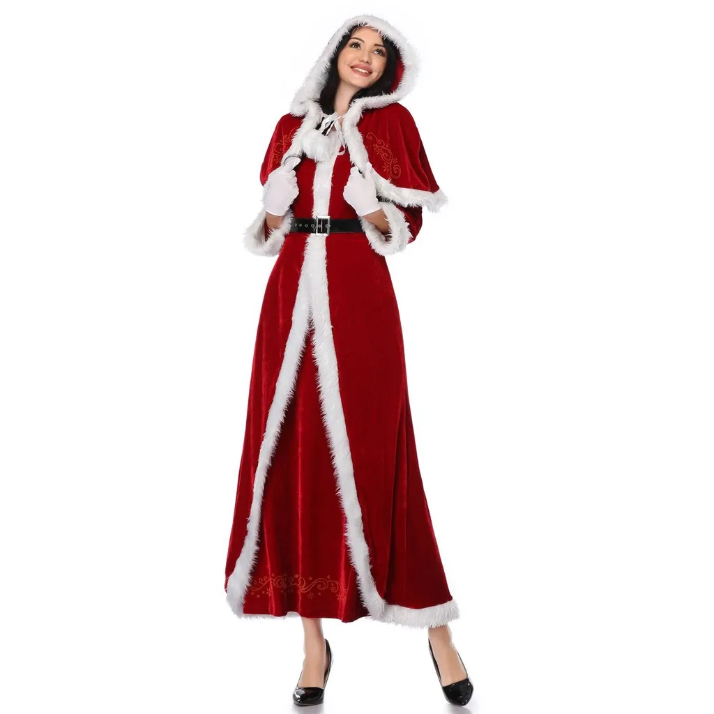 Женская мода шаль леди с длинными рукавами бархат рождественские костюмы платье
