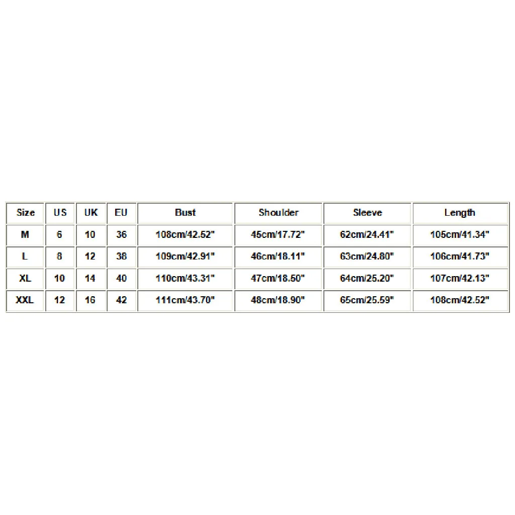 Размер Свяжитесь с нами Великобритания ЕС Обхват груди Сумка на плечо Рукава Длина М 6 10 36 108 см/42,52'' 45 см/17,72'' 62 см/24,41'' 105 см/41,34'' L 8 12 38 109 см/42,91'' 46 см/18,11'' 63 см/24,80'' 106 см/41,73'' XL 10 14 40 110 см/43,31'' 47 см/18,50'' Высота голенища 64 см; 25,20'' 107 см/42,13'' XXL 12 16 42 111 см/43,70'' 48 см/18,90'' 65 см/25,59'' 108 см/42,52''