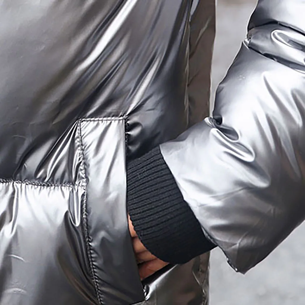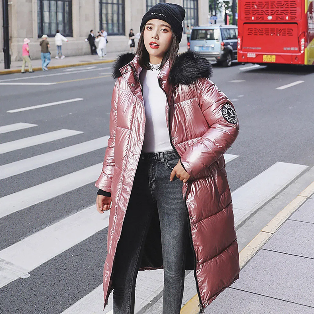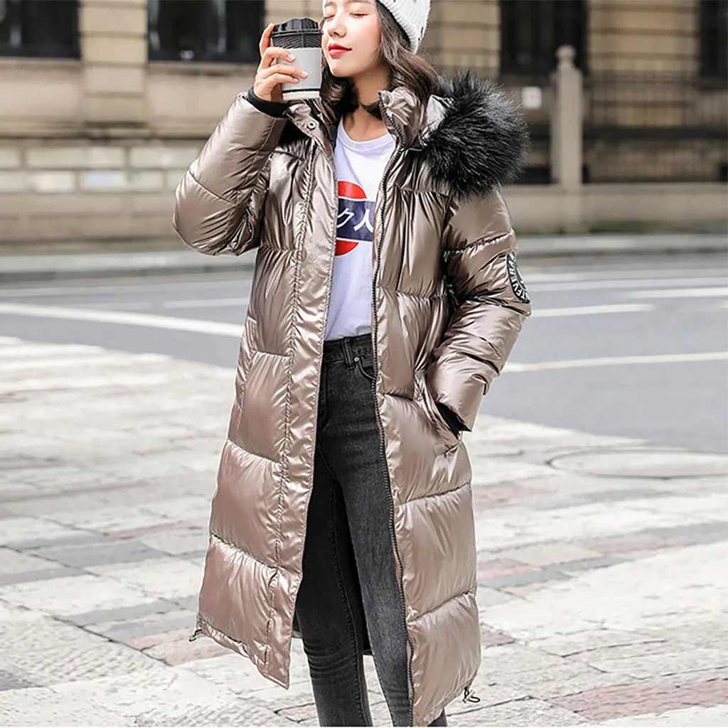 Женское зимнее толстое теплое свободное ветрозащитное длинное пальто с яркой поверхностью со стразами