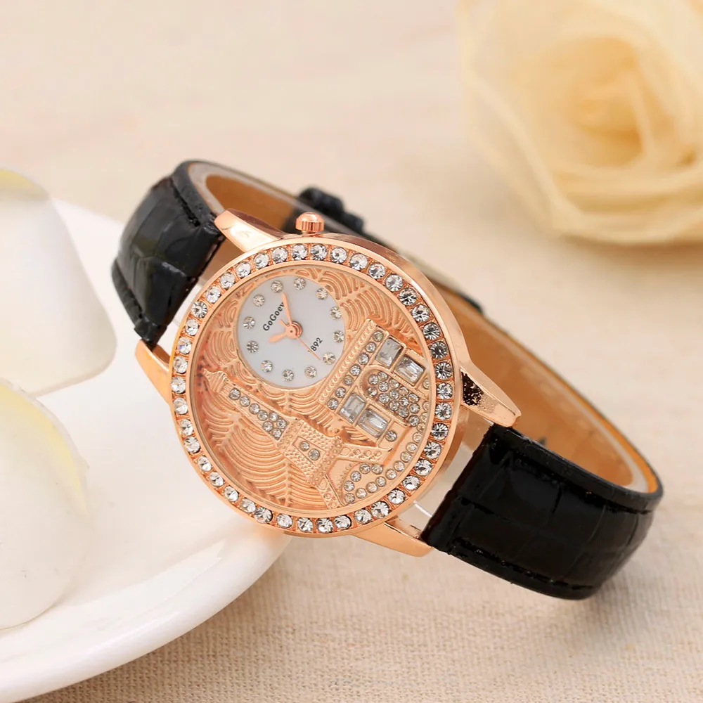 Fashion Quartz Watch Ribbon Digital Dial Leather Strap Quartz Analog Watch Diamond-drilled scale belt watch Reloj caliente 03*